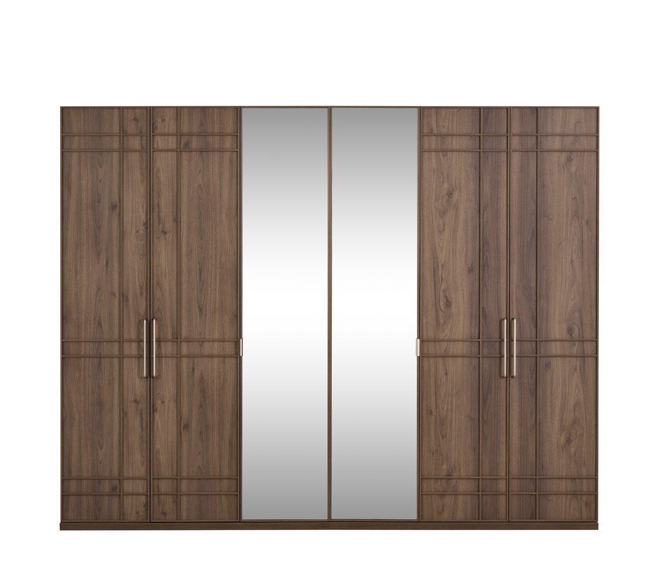 Kleiderschrank Schlafzimmerschrank Schrank Braun Holz Spiegel 6 Türen
