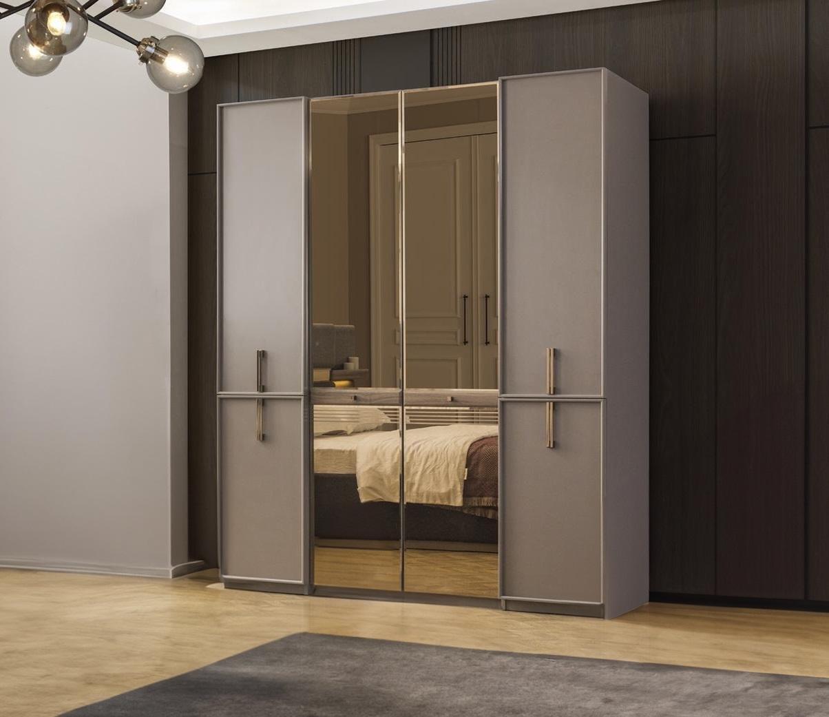 Kleiderschrank Schlafzimmerschrank Schrank Holzschrank Grau Spiegel