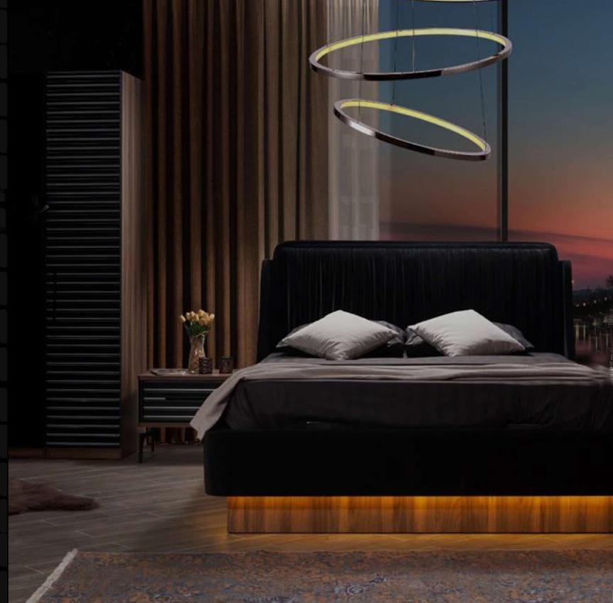 Braun-Schwarzes Schlafzimmer Set Komplette Garnitur Bett 2x Nachttische