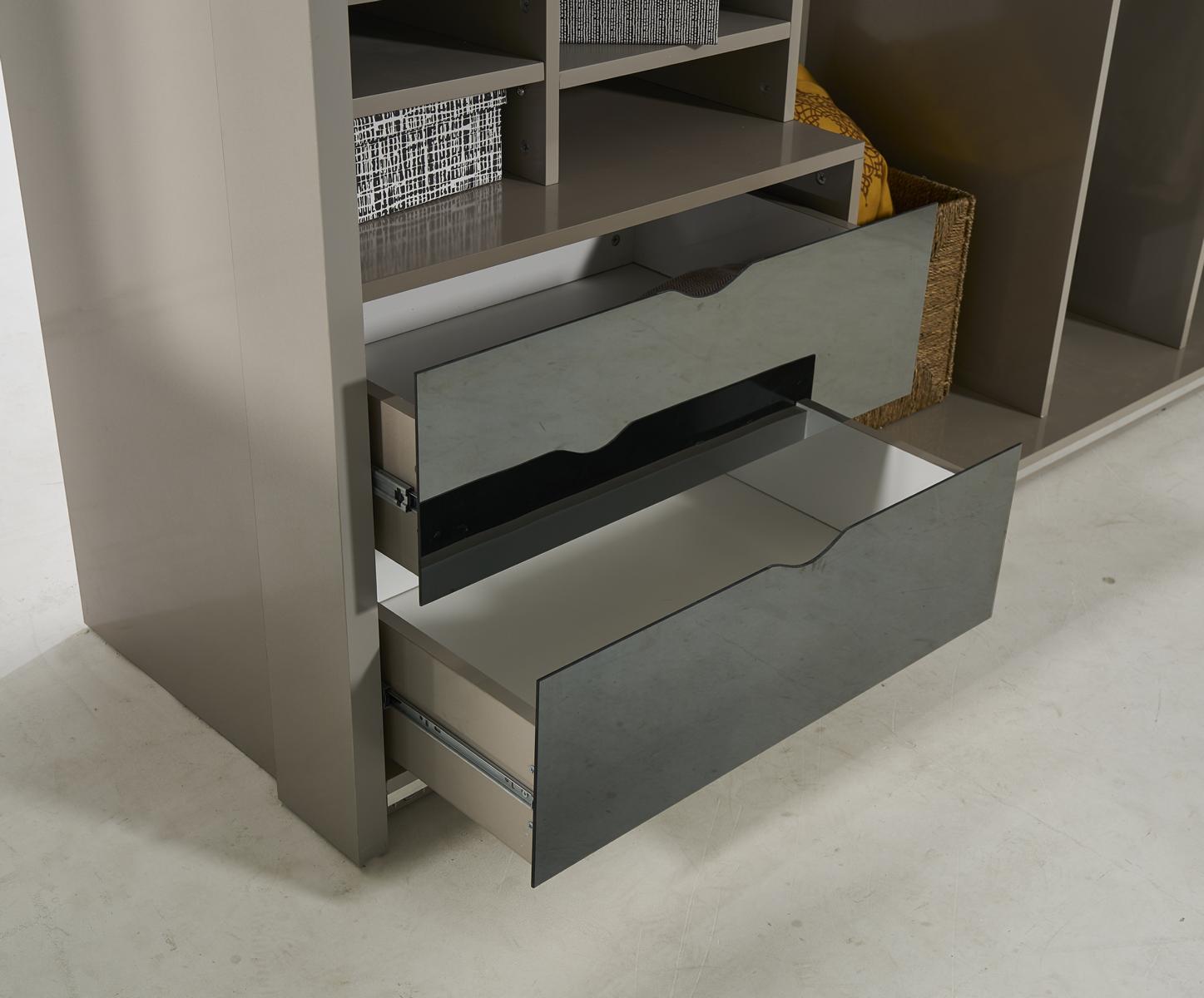 Luxus Glas Schlafzimmer Bett Nachttisch Eckschrank Kommod Spiegel Hocker Grau