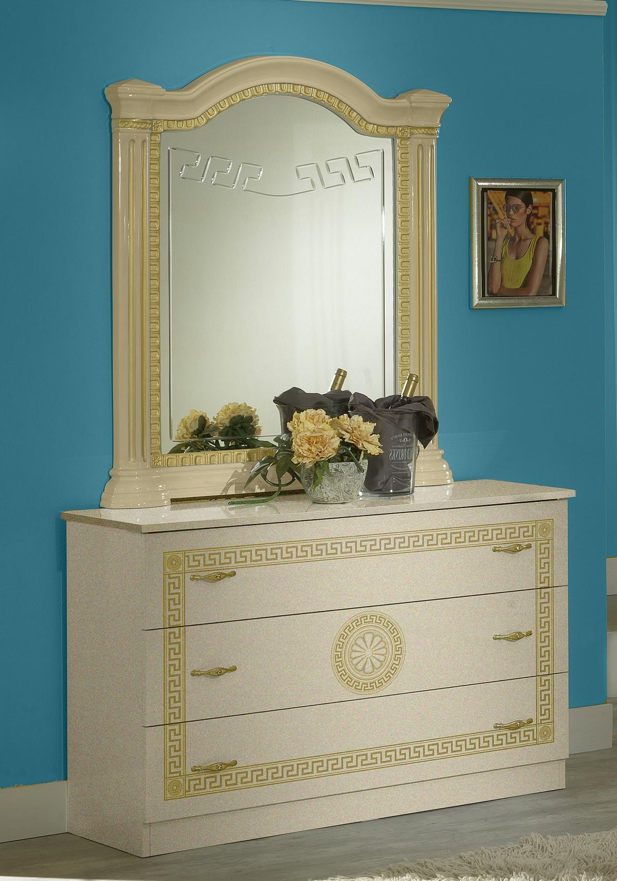 Erwecken Sie mit dem Luxus Schlafzimmer Klassisches Holz Bett Nachttisch 6tlg Design Möbel von Bencompany wahre Eleganz in Ihrem Zuhause! Dieses exquisite Set aus klassischem Holzdesign verleiht Ihrem Schlafzimmer eine zeitlose Schönheit und schafft eine luxuriöse Atmosphäre. Die Maße des Bettes betragen 180x200cm, während der Nachttisch 50 x 43 x 50 cm misst. Der geräumige Schrank bietet mit seinen Maßen von 181 x 54 x 210 cm ausreichend Platz für Ihre Kleidung. Die passende Kommode (116 x 43 x 76 cm) und der elegante Spiegel (94 x 9 x 110 cm) runden das Set perfekt ab. Hergestellt aus hochwertigem Holz in der Farbe wie abgebildet, besticht dieses Design Möbelset durch seine Qualität und Langlebigkeit. Bringen Sie mit Bencompany die Eleganz des italienischen Designs in Ihr Zuhause und genießen Sie luxuriöse Möbelklassiker, die Ihren Wohnraum auf ein neues Niveau heben!