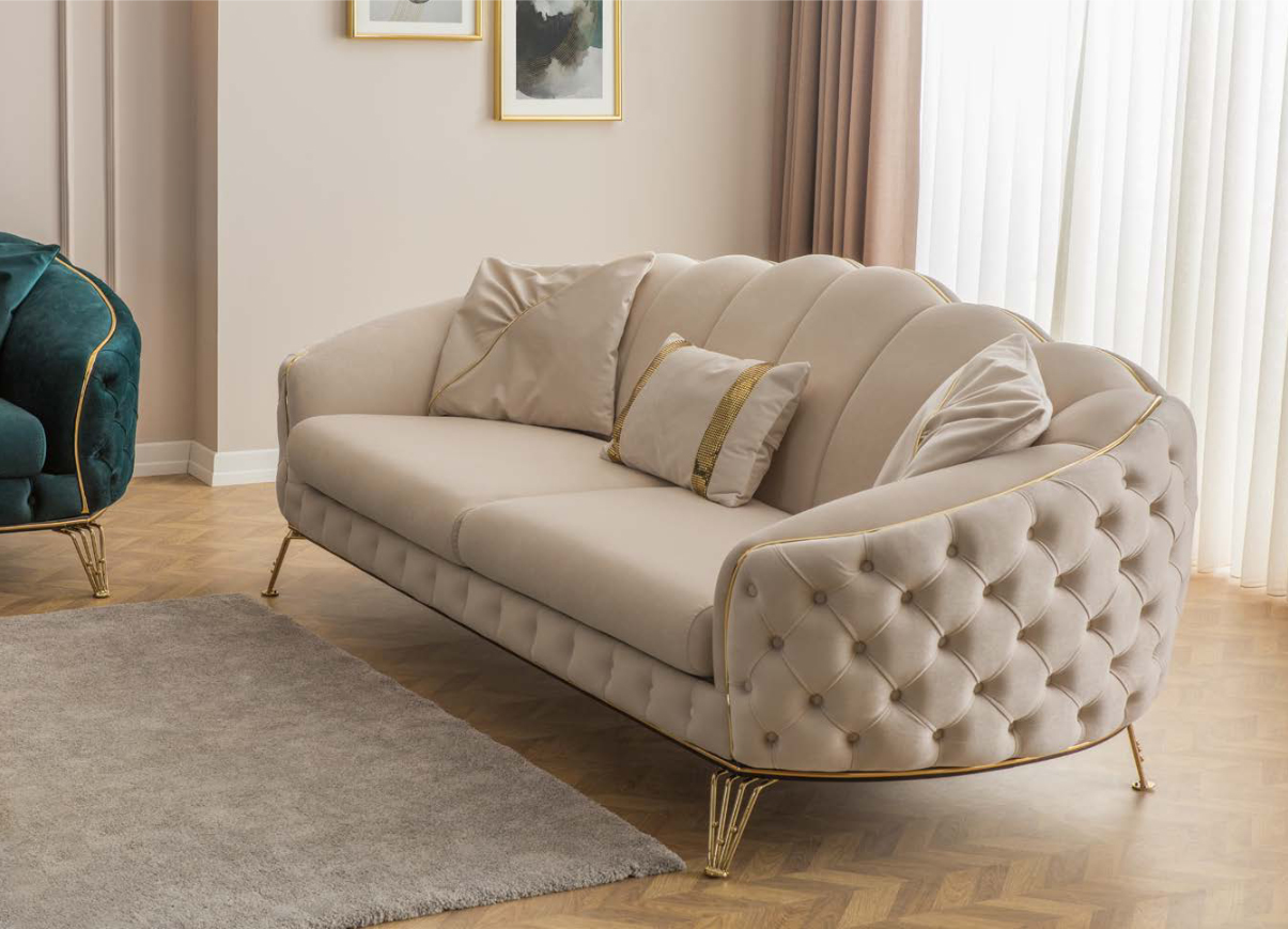 Erleben Sie pure Eleganz mit unserem Modernen Beige Wohnzimmer Set! Dieses Set beinhaltet ein geräumiges 3-Sitzer Sofa und einen gemütlichen Sessel, perfekt für Ihr Wohnzimmer. Die Maße des Sofas betragen ca. 247 x 105 x 90 cm, während der Sessel ca. 101 x 90 x 86 cm misst. Mit einer Sitzhöhe von ca. 44 cm und verschiedenen Farboptionen wie Kastanienbraun, Moosgrün, oder Kirschrot, können Sie das Set ganz nach Ihren individuellen Wünschen anpassen. Hergestellt aus hochwertigem Holz, Textil und Metall, garantiert dieses Set nicht nur höchsten Komfort, sondern auch Langlebigkeit. Bringen Sie Stil in Ihr Zuhause und bestellen Sie noch heute Ihr neues Wohnzimmer Set!