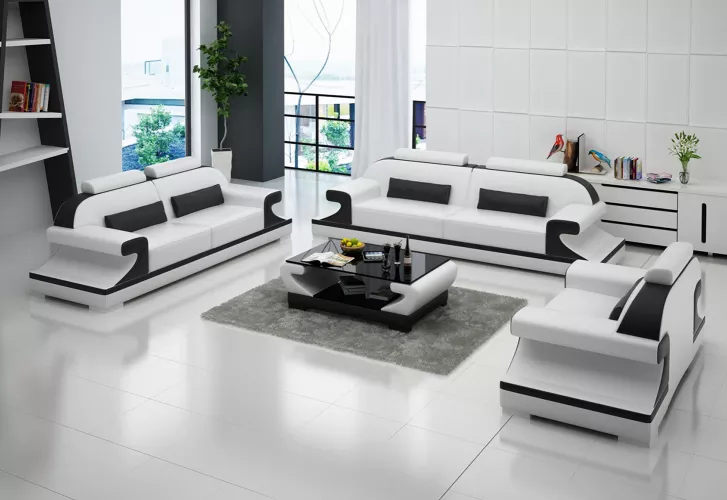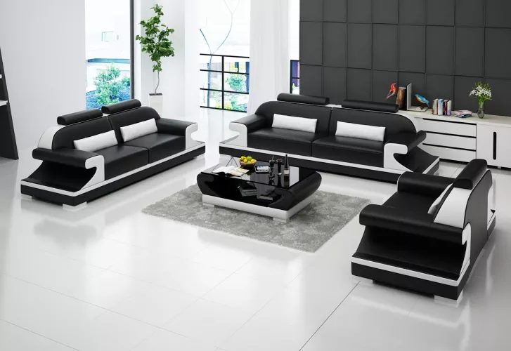 Moderne Sofagarnitur 221 Sitzer Couchtisch Ledersofa Sofa Couch Wohnlandschaft