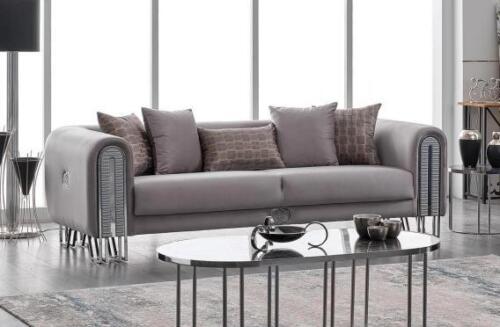 Samt Couch Silber Luxus Sofagarnitur 3+3 Sitzer Couchen Sofa 2tlg.