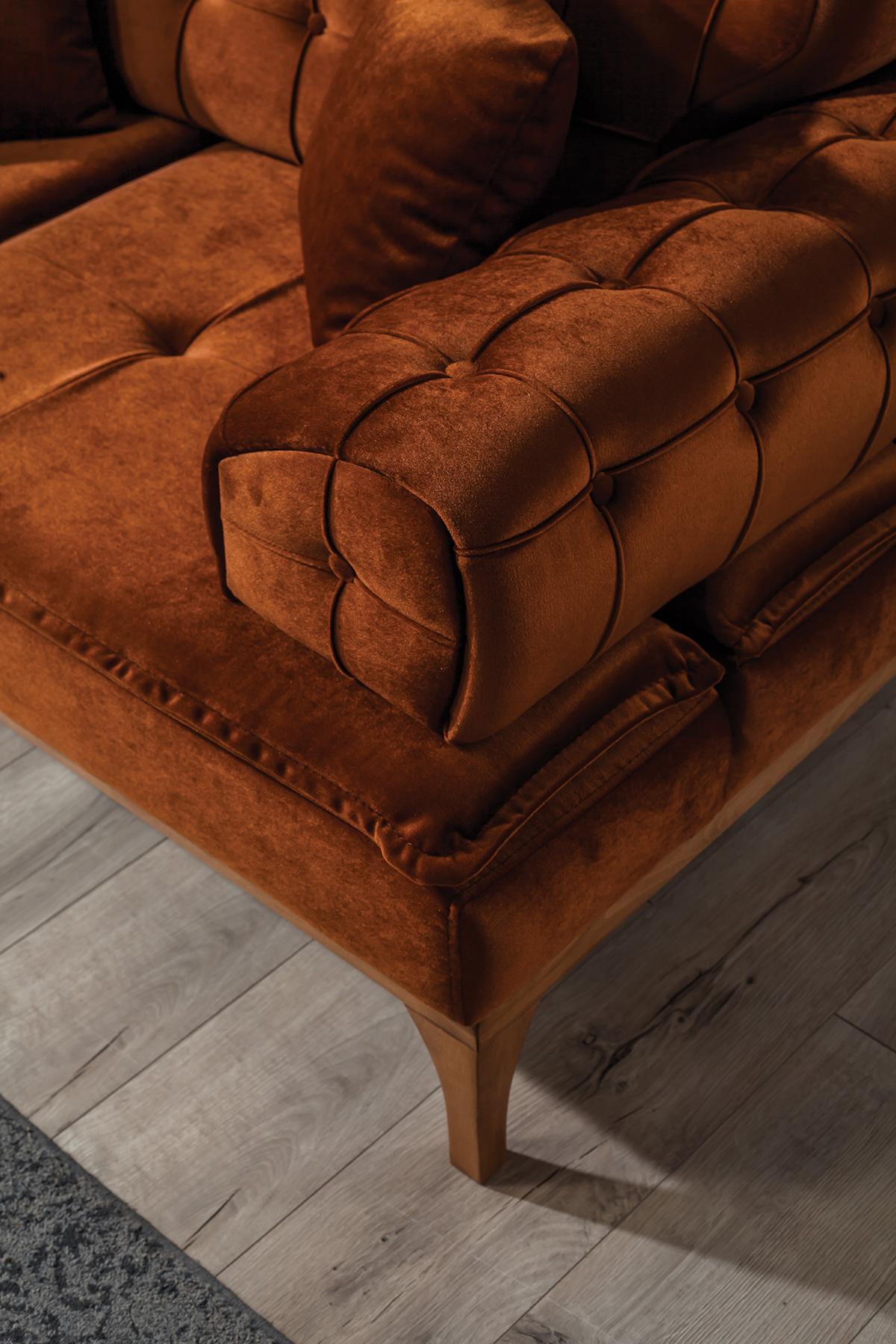 Entspannen Sie stilvoll in unserer Sofagarnitur in leuchtendem Orange! Diese stilvolle Garnitur besteht aus einem Dreisitzer-Sofa und einem gemütlichen Sessel, die mit hochwertigem Holz und Textil gefertigt sind. Der Dreisitzer hat Maße von ca. 220 x 92 x 82 cm und bietet eine Sitzhöhe von ca. 44 cm sowie eine Sitztiefe von ca. 56 cm. Der Sessel misst ca. 70 x 70 x 82 cm und bietet denselben Komfort. Ob im Wohnzimmer oder im Büro, diese Sofagarnitur wird definitiv zum Blickfang! Passend wie abgebildet, wird dieses Set Ihre Einrichtung beleben. Erhältlich in einem breiten Farbspektrum sowie in verschiedenen Materialien - gestalten Sie Ihre persönliche Traumcouch! Gönnen Sie sich Komfort und Stil - bestellen Sie Ihre neue Sofagarnitur noch heute! ????️