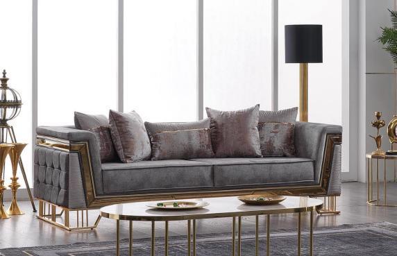 Grau Sofagarnitur 3+1 Sitzer mit Edelstahl Couch Sofa Polster Set 2tlg