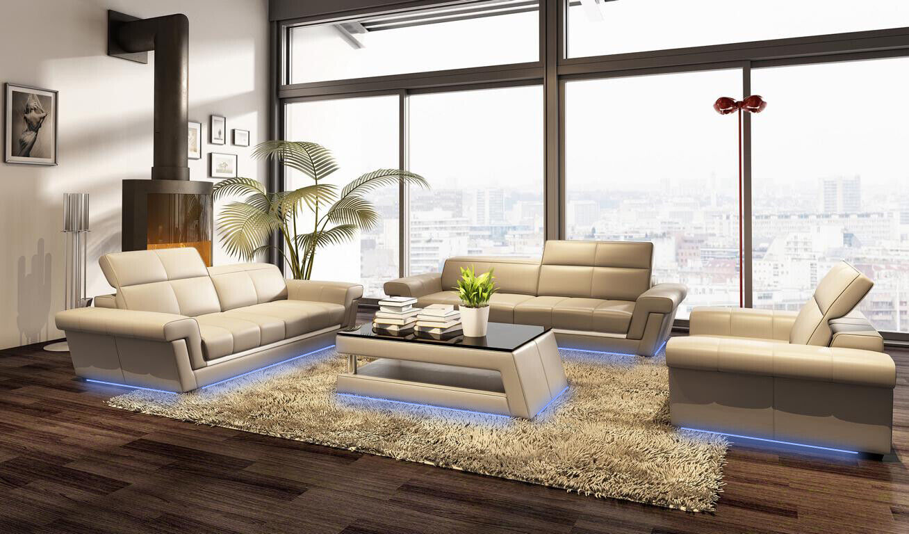 Designer Sofagarnitur Polster Ledersofa Couch Set Kombination 3+2+1