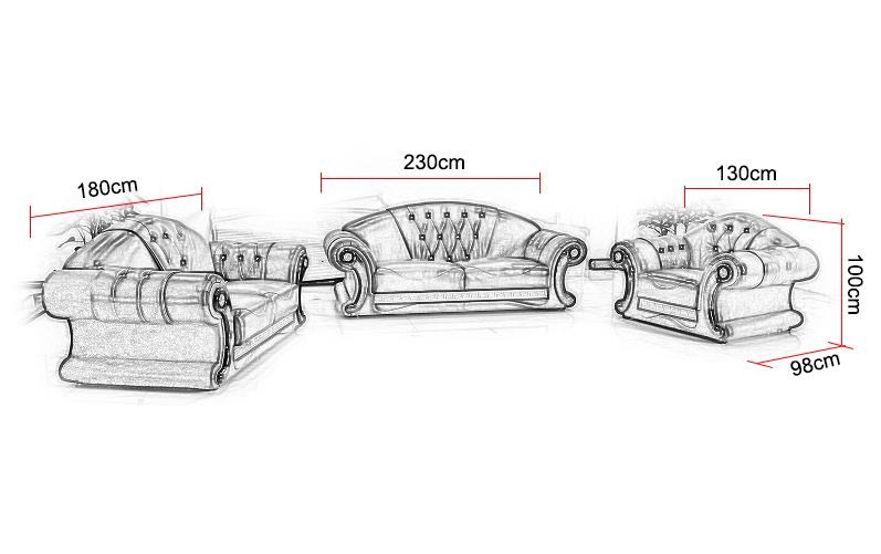 Erhalten Sie stilvollen Komfort mit unserer hochwertigen Chesterfield Sofagarnitur Polster Couch Sitz Garnitur in einem 2-teiligen Set bestehend aus einem 3-Sitzer und einem 2-Sitzer. Die Neuheit dieser Garnitur wird Ihr Wohnzimmer in ein elegantes Ambiente verwandeln. Mit Maßen von ca. 230 x 100 x 98 cm für den 3-Sitzer und ca. 180 x 100 x 98 cm für den 2-Sitzer bietet dieses Set genügend Platz für Ihre Familie und Gäste. Die Sitzhöhe von ca. 42 cm und die Sitztiefe von ca. 58 cm sorgen für ein komfortables Sitzerlebnis. Wählen Sie aus einer Vielzahl von Farben wie Kastanienbraun, Moosgrün, Smaragdgrün, Feuerrot und vielen mehr, um die Garnitur nach Ihrem persönlichen Geschmack anzupassen. Außerdem bieten wir unterschiedliche Materialoptionen an, darunter Premium Lederfaserstoff, echtes italienisches Rindsleder und hochwertiger Textilstoff. Verpassen Sie nicht die Chance, Ihre Wohnzimmerausstattung aufzuwerten und bestellen Sie noch heute Ihre individuelle Chesterfield Sofagarnitur!