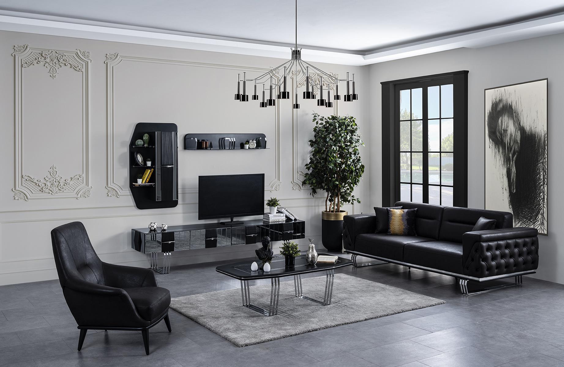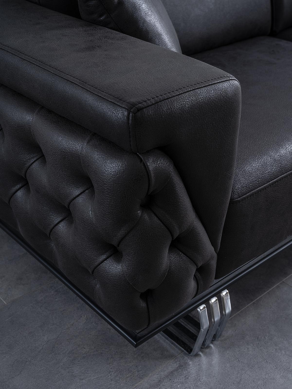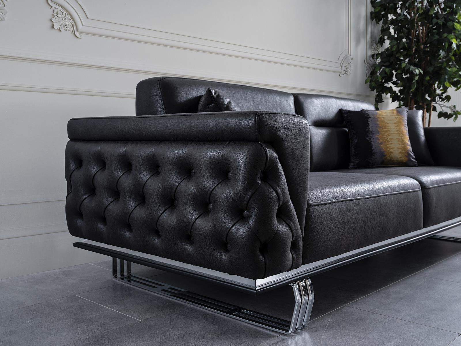 Dreisitzer Sofa 3 Sitzer Sofas Schwarz Kunstleder Wohnzimmer Luxus
