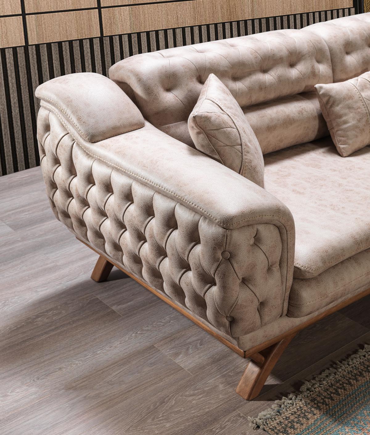 Chesterfield 3 Sitzer Beige Design Couchen Polster Sofas Textil Couch