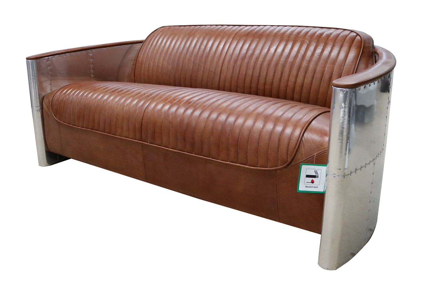 Design Club 3 Sitzer Sofa Ledersofa Dreisitzer Vintage Leder Aluminium Couchen