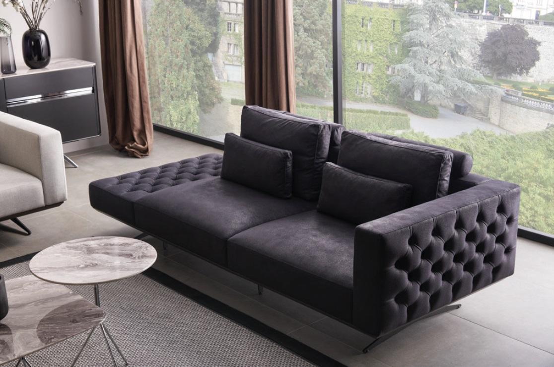 Entdecken Sie unsere exklusive Design Sofagarnitur in Schwarz! Dieses elegante 3-Sitzer Sofa aus hochwertigem Textil ist nicht nur ein Blickfang in Ihrem Wohnzimmer, sondern bietet auch höchsten Sitzkomfort. Die Maße von ca. 240 x 90 x 95 cm (L x B x H) sorgen für ausreichend Platz zum Entspannen. Die Sitzhöhe von ca. 44 cm und die Sitztiefe von ca. 56 cm bieten eine angenehme Sitzposition. Das Sofa wurde aus Holz und Metall gefertigt, was für Stabilität und Langlebigkeit sorgt. Die elegante schwarze Farbe verleiht Ihrem Wohnraum eine moderne Note. Gönnen Sie sich ein stilvolles Upgrade für Ihr Zuhause mit dieser einzigartigen Sofagarnitur! Passend zu Ihrem individuellen Stil bieten wir eine Vielzahl von Farben und Materialoptionen an. Ob klassisch in Schwarz, in einem kräftigen Rubinrot oder in einer anderen Farbe Ihrer Wahl - bei uns finden Sie garantiert das perfekte Sofa für Ihre Bedürfnisse. Entdecken Sie noch heute die Möglichkeiten und holen Sie sich Ihre neue Design Sofagarnitur nach Hause!