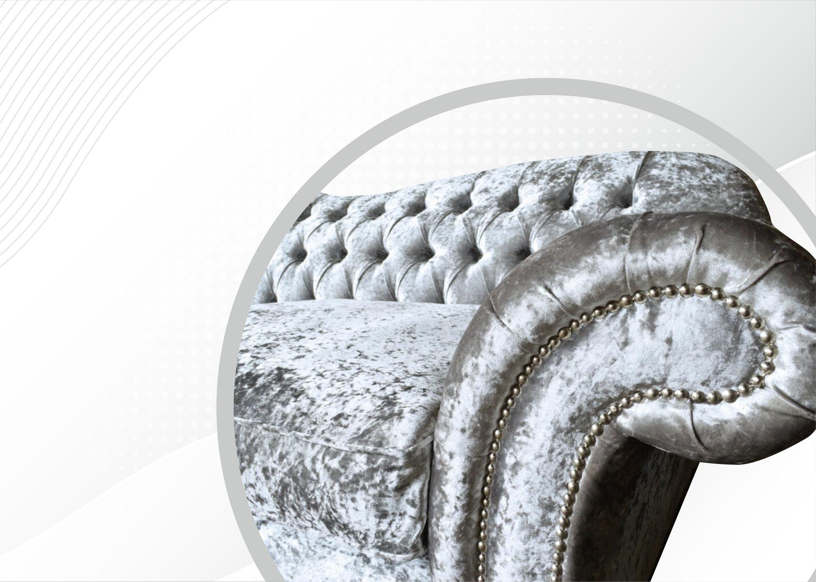Entdecken Sie das elegante Dreisitzer Sofa 3 Sitz Couch Chesterfield Polster Sitz Garnitur Samt Graue – ein exklusives Designstück, das Ihrem Wohnraum Luxus verleiht. Mit Maßen von ca. 240 x 97 x 107 cm (L x H x T) und einer Sitztiefe von ca. 60 cm bietet dieses Sofa sowohl Stil als auch Komfort. Sie haben die Freiheit, die Farbe und das Material nach Ihren Wünschen anzupassen. Wählen Sie aus unserer breiten Farbpalette, die Farben wie Creme, Rubinrot, Smaragdgrün und viele mehr umfasst. Entscheiden Sie sich für hochwertigen Samt und velours, gepaart mit exquisitem italienischem Rindsleder oder Fleckenabweisendem Stoff, um Ihren persönlichen Stil widerzuspiegeln. Die Möglichkeit, weitere Größen wie 5-Sitzer oder 1-Sitzer hinzuzufügen, sowie eine Bettfunktion mit Matratze machen dieses Sofa zu einem vielseitigen Begleiter in Ihrem Zuhause. Erleben Sie erstklassige Qualität mit einem echten Holzgestell, einer Unterfederung und einem Federkern. Entscheiden Sie sich für Kristallsteine als stilvolle Details oder wählen Sie Luxus Swarovski Kristallsteine für ein einzigartiges Highlight. Bringen Sie mit dem Dreisitzer Sofa 3 Sitz Couch Chesterfield Polster Sitz Garnitur Samt Graue Eleganz und Komfort in Ihr Zuhause und gestalten Sie Ihr Wohnzimmer nach Ihren Wünschen. Kaufen Sie jetzt und genießen Sie ein exklusives Möbelstück, das Ihre Gäste beeindrucken wird.