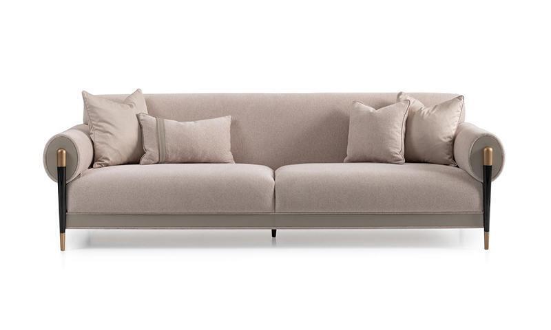 Garnitur Wohnzimmer Sofa 3 Sitzer Stoffsofa Beige Couchtische 4tlg