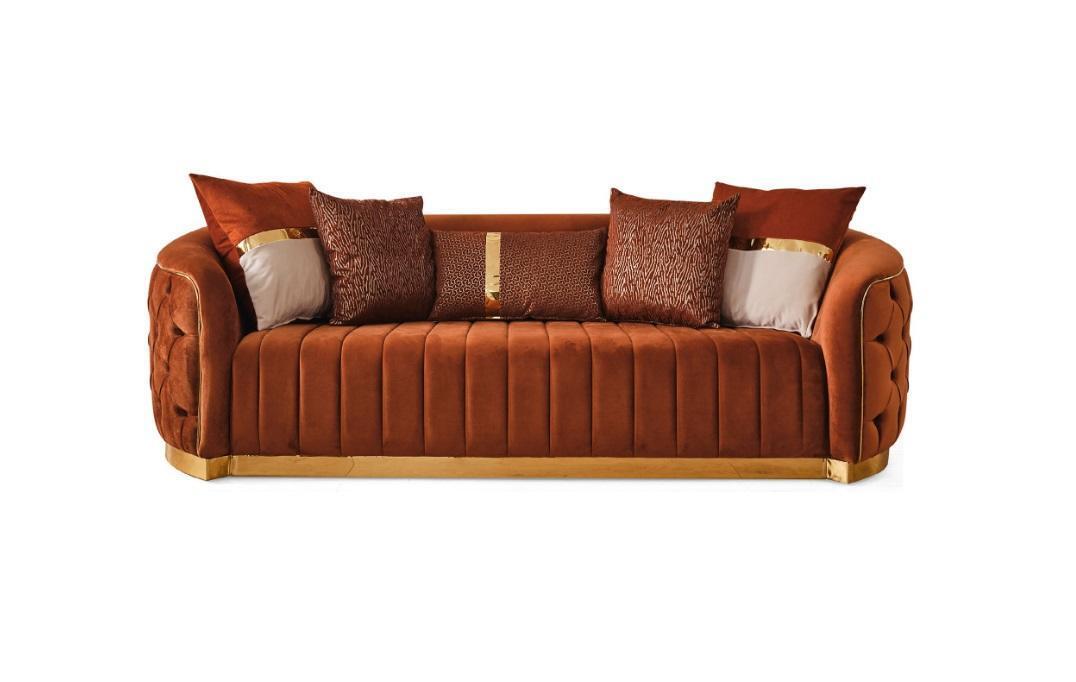 Orange Textil Dreisitzer Moderne Designer Luxus Couch Sofa Samt Chesterfield