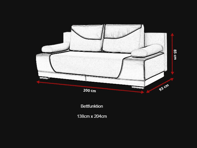 Entspannen Sie stilvoll und komfortabel mit unserer Schlafsofa Klappcouch 3-Sitzer mit Schlaffunktion und Bettkasten! Diese Designer-Couch von XL Möbel bietet nicht nur eine Vielzahl von Anpassungsmöglichkeiten, sondern auch modernes Design, das jedes Zuhause in einen Blickfang verwandelt. Mit Maßen von ca. 200 cm Länge, 85 cm Höhe und 93 cm Tiefe passt dieses Sofa perfekt in Ihr Wohnzimmer. Sie haben die Freiheit, aus einer breiten Palette von Farben wie Smaragdgrün, Türkis, Lavendel oder Perlenweiß zu wählen. Ebenso können Sie das Material von Stoff bis Premium Kunstleder aus verschiedenen Gruppen wählen. Das Schlafsofa verfügt über eine Liegefläche von ca. 138 x 204 cm und einen praktischen Bettkasten, der im Preis enthalten ist. Das Innengestell aus echtem Holz bietet zusätzliche Stabilität, während der Federkern für optimalen Komfort sorgt. Nicht nur ein Sofa, sondern ein multifunktionales Möbelstück, das Ihrem Zuhause Eleganz und Gemütlichkeit verleiht. Wählen Sie noch heute Ihre gewünschte Farbe und Größe, um dieses Sofa zu einem einzigartigen Teil Ihres Wohnraums zu machen!