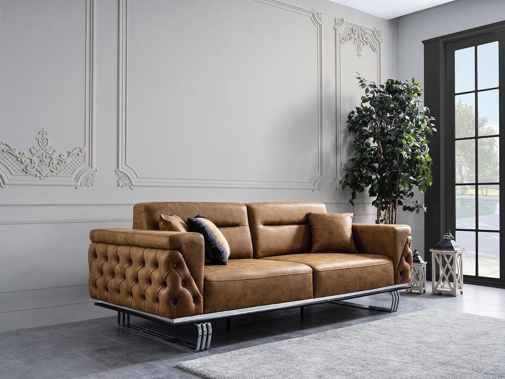 Sofa 3 Sitzer Wohnzimmer Design Möbel Stil Modern Neu braun Luxus