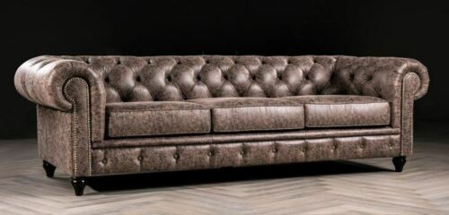 Mens Club Chesterfield Sofa Couch Leder Polster Dreisitzer Braun NEW