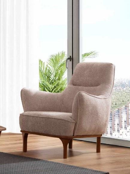 Moderner Sessel Cocktailsessel Ohrensessel Designer Möbel Beige Holzmöbel