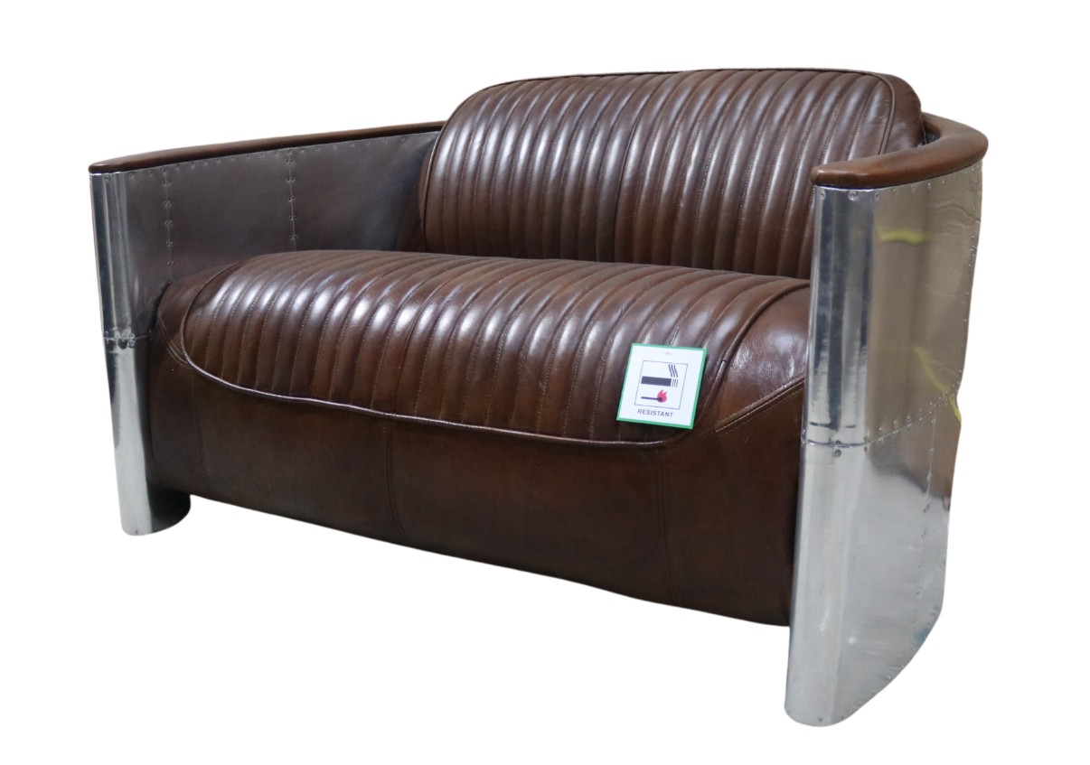 Echtleder Aluminium Sofa 2-Sitzer Vintage Leder Möbel Ledersofa Clubsofa Couch