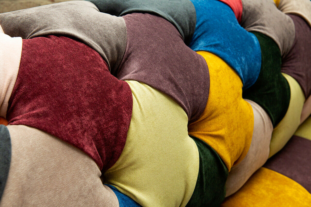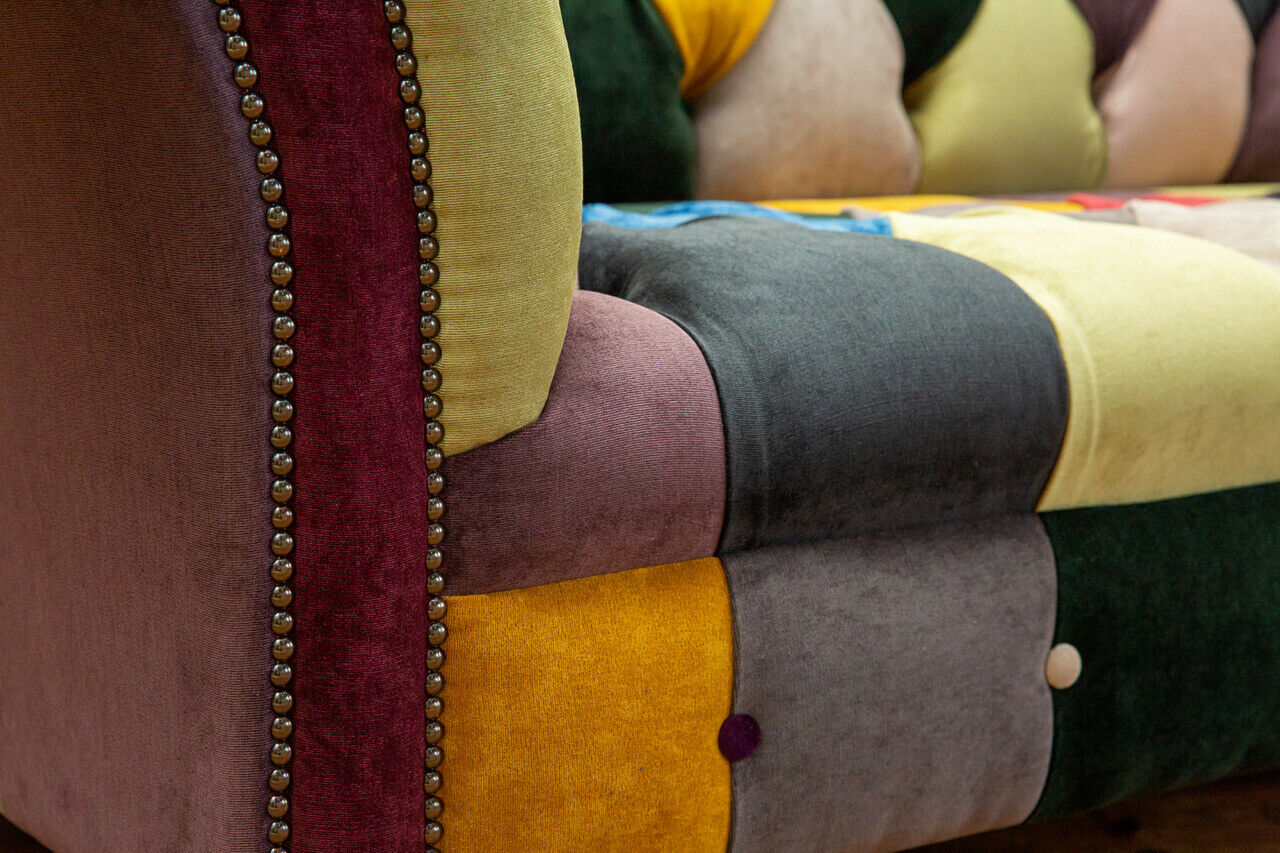 Modern Design Bunter Chesterfield 2 Sitzer Sofa Textil Couch Polster Design