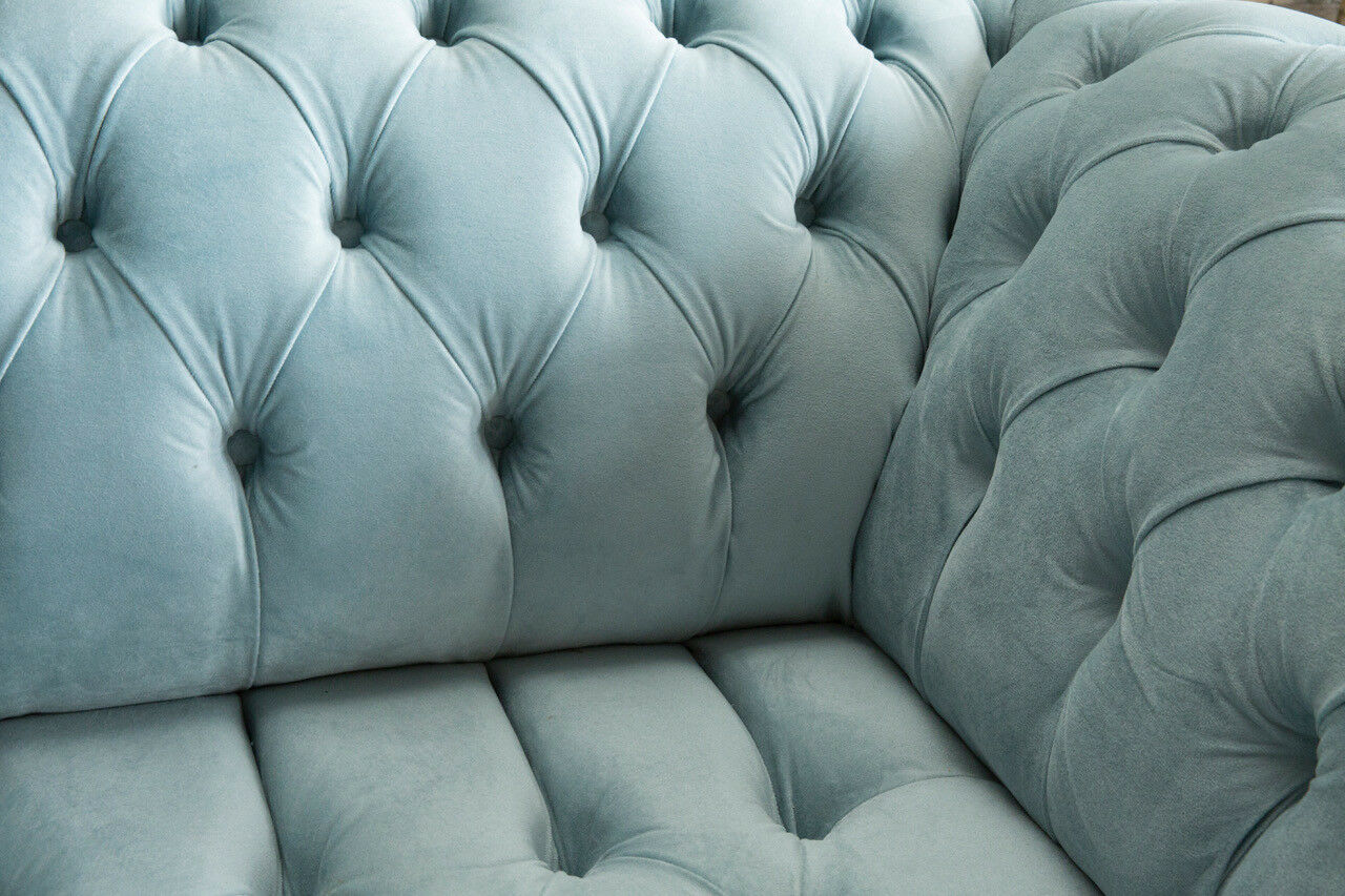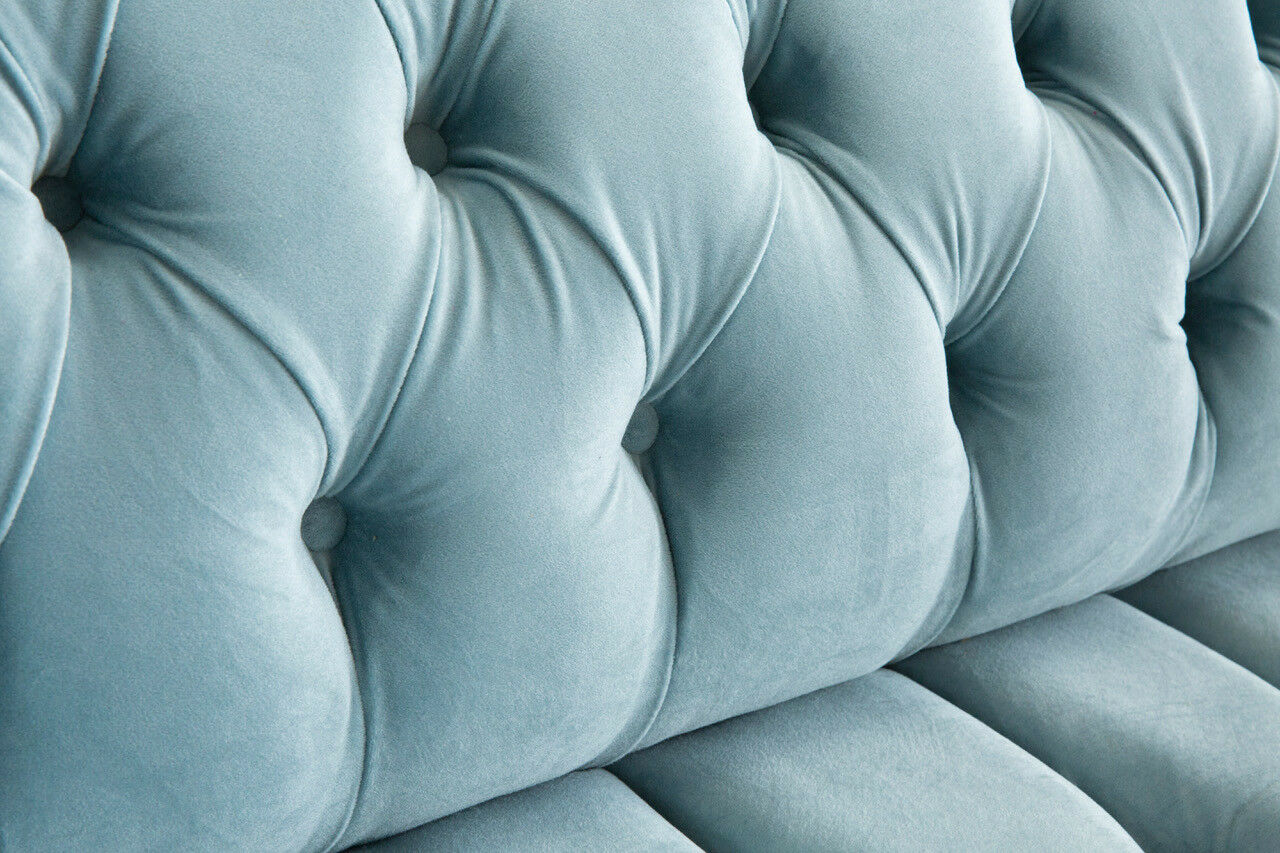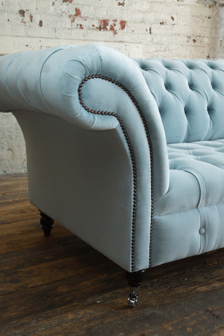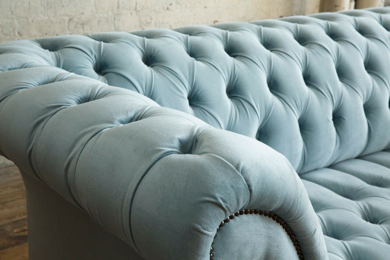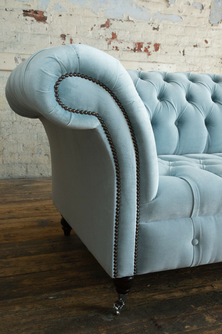 Chesterfield 3 Sitzer Polster Couch Leder Sofa Couchen Textil Modern Stil Blau