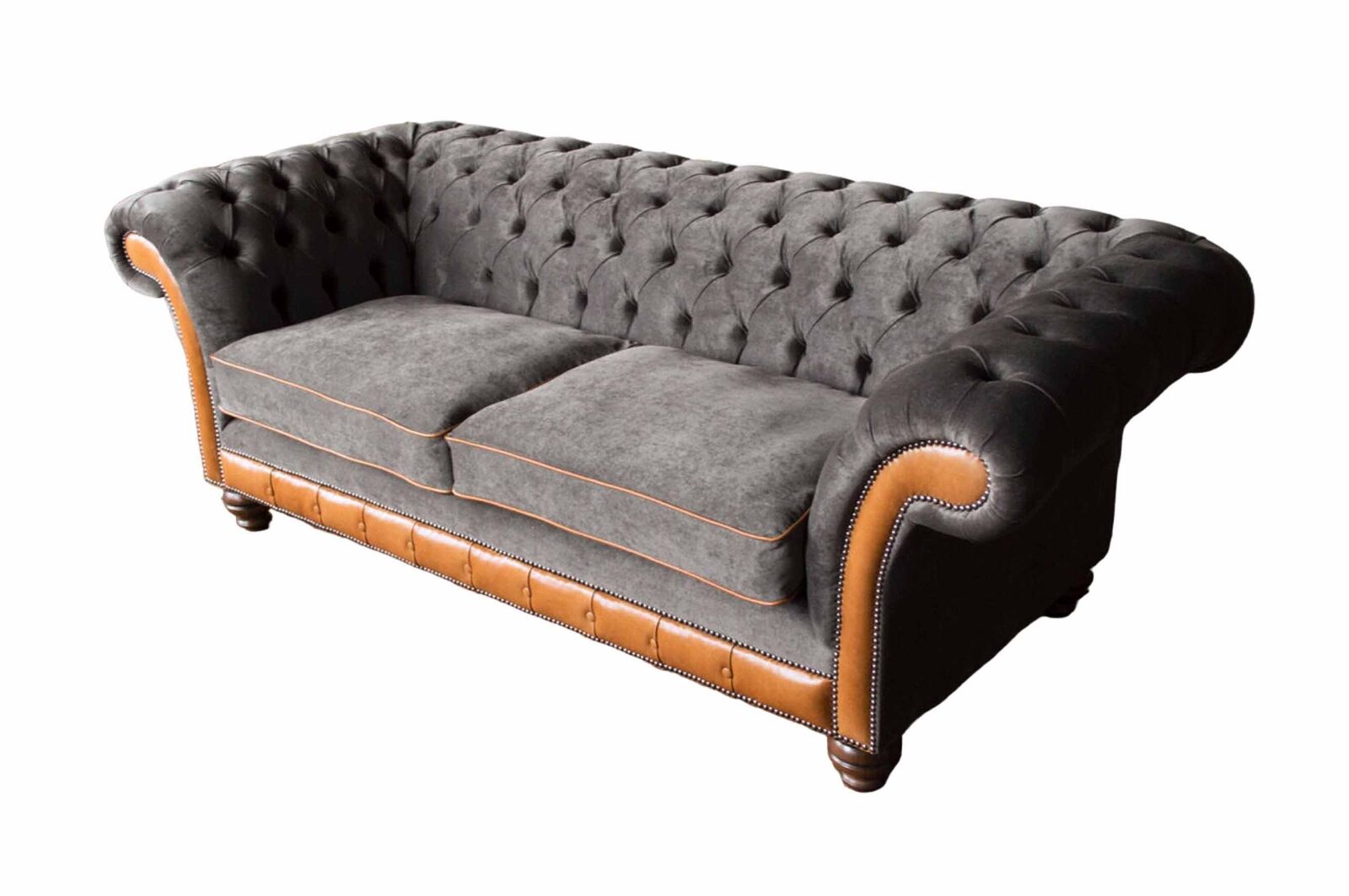 Entdecken Sie das exklusive Chesterfield Sofa 3 Sitzer in elegantem Grau! Mit diesem Design Couch Polster aus hochwertigem Stoff verleihen Sie Ihrem Wohnzimmer einen Hauch von Luxus und Komfort. Die Maße von ca. 230 x 80 x 90 cm bieten ausreichend Platz für gemütliche Abende allein oder mit Ihren Liebsten. Das Besondere an unserem Angebot ist die freie Farbwahl sowie die Möglichkeit der individuellen Anpassung. Sie können zwischen verschiedenen Materialien wie Textil, Premium Kunstleder, Echtleder, Samt Stoff oder Fleckenabweisendem Stoff wählen. Optional können Sie auch eine Bettfunktion mit Matratze hinzufügen. Kreieren Sie Ihr Traumsofa ganz nach Ihrem Geschmack und wählen Sie aus einer Vielzahl von Farben wie Rubinrot, Salbeigrün, Bernstein oder Mandarinorange. Lassen Sie sich von unseren hochwertigen Materialien wie italienischem Rindsleder und echtem Holzgestell überzeugen. Erleben Sie exklusive Designmöbel von höchster Qualität - bestellen Sie Ihr Chesterfield Sofa 3 Sitzer noch heute und tauchen Sie ein in ein einzigartiges Wohnerlebnis!