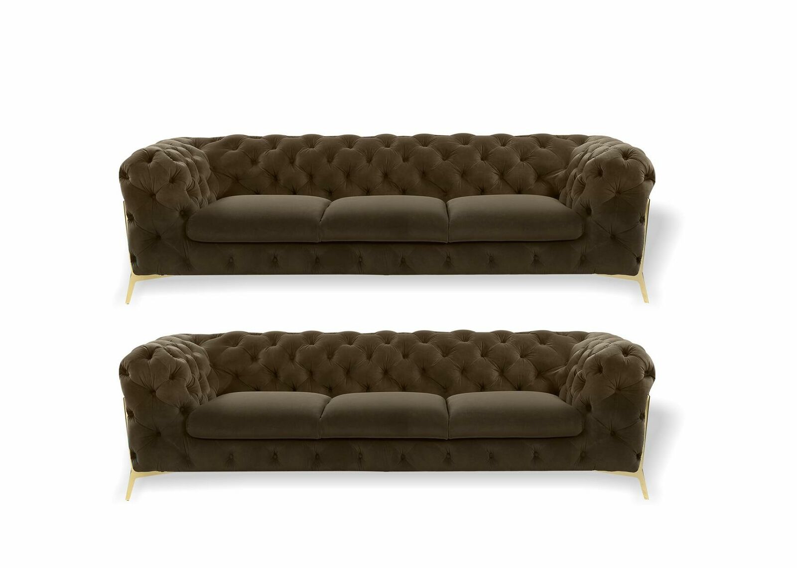 Chesterfield Sofa Samt Couch Polster Sitz 3+3 Sitz Garnitur Design Couchen Sofas