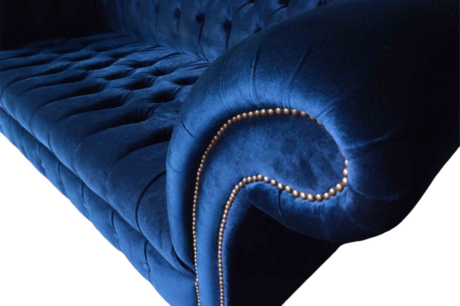 Blaue Chesterfield Dreisitzer Sofa 3 Sitzer Sofas Luxus Textil Couchen