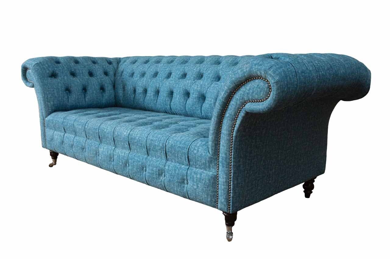 Blauer Dreisitzer Samt Couch Wohnzimmer Couchen Sofa Sitzmöbel Sofa Chesterfield