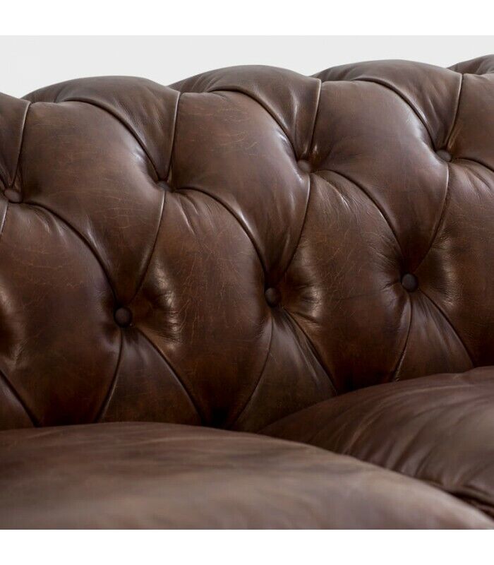 Englische Chesterfield Couch Leder Sofa Couchen Sofas Dreisitzer Braun Rollen