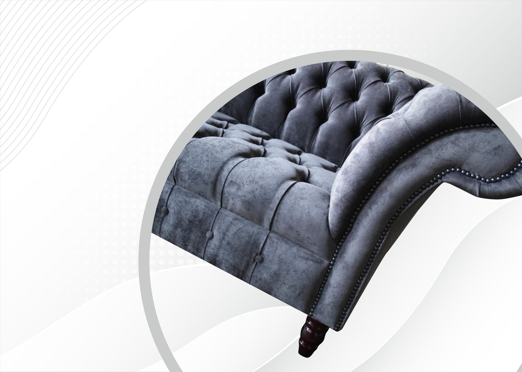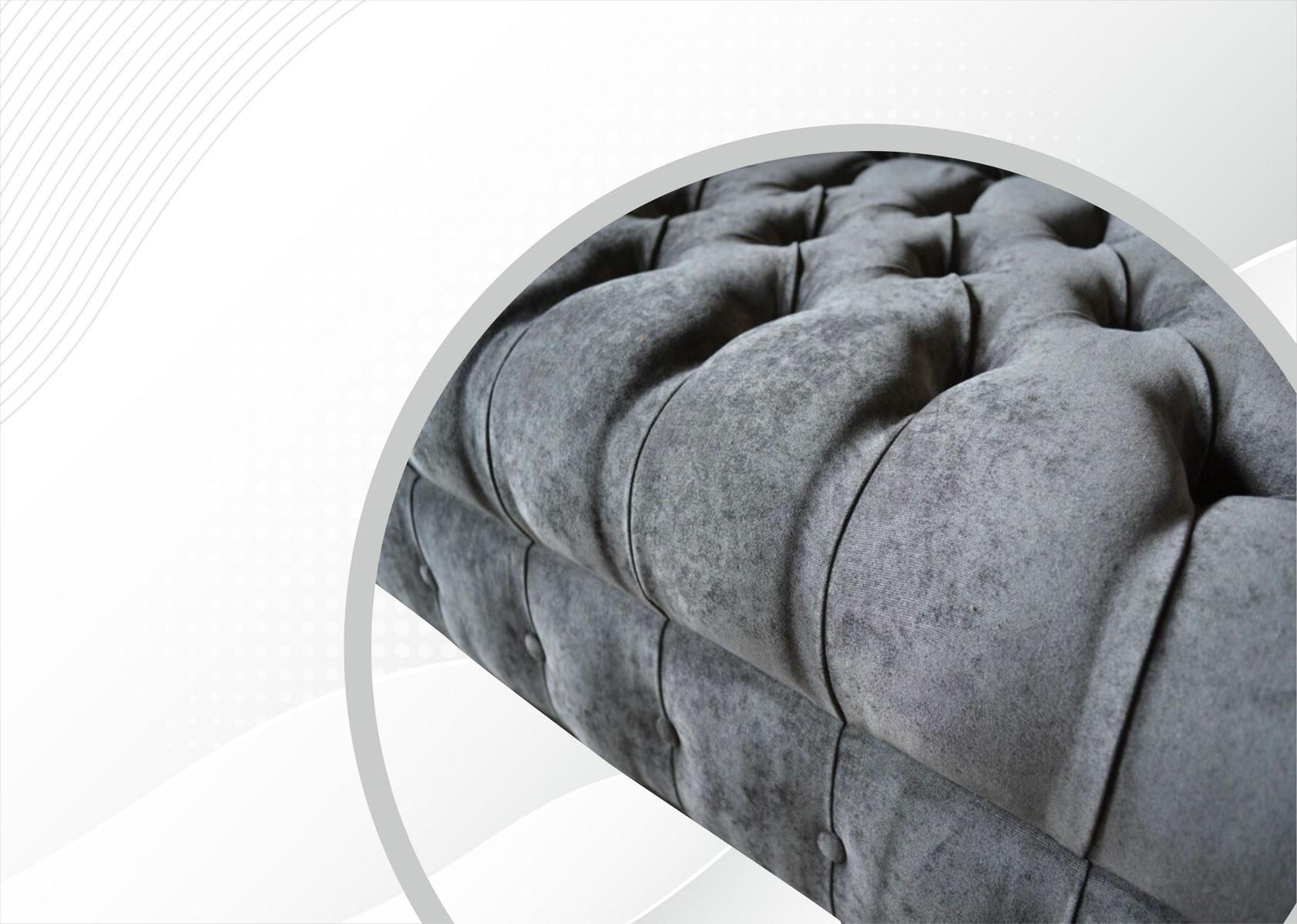 Chesterfield 3 Sitzer Wohnzimmer Couch Sofa Polster Sitz Textil Garnitur Grau