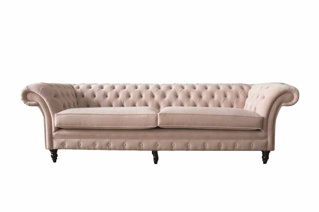 Modern Chesterfield 4 Sitzer Design Sofa Rosa Polstermöbel Sofas Stoff Textil