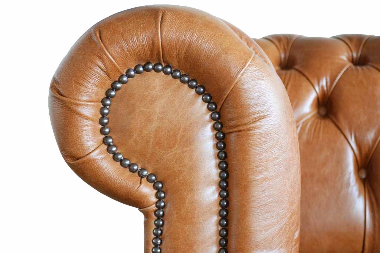 Entdecken Sie das exklusive Chesterfield Sofa 3 Sitz Polster Couchen Sofas Couch Dreisitzer in Braun! Dieses elegante Sofa aus Leder und Holz besticht nicht nur durch sein zeitloses Design, sondern auch durch höchsten Komfort und Qualität. Mit einer Größe von ca. 230 x 80 x 90 cm bietet das Sofa ausreichend Platz für entspannte Stunden allein oder mit Familie und Freunden. Die Sitzhöhe von ca. 42 cm und die Sitztiefe von ca. 52 cm sorgen für ein gemütliches Sitzen. Das Besondere an unserem Sofa ist die Möglichkeit der individuellen Anpassung. Wählen Sie aus einer Vielzahl von Farben wie Creme, Azurblau, Rubinrot und vielen mehr. Zudem stehen verschiedene Materialoptionen zur Auswahl, darunter Premium Echtleder, Premium Samt Stoff und Magic Home (Fleckenabweisender Stoff). Optional können Sie das Sofa mit einer Bettfunktion inklusive Matratze oder mit edlen Kristallsteinen veredeln lassen. Das Innengestell aus echtem Holz und der Federkern garantieren Langlebigkeit und Komfort. Entdecken Sie jetzt die Möglichkeiten und lassen Sie sich von unserer exklusiven Designmöbel-Kollektion inspirieren. Gestalten Sie Ihr Traumsofa ganz nach Ihren Wünschen und machen Sie Ihr Zuhause zu einer stilvollen Wohlfühloase.