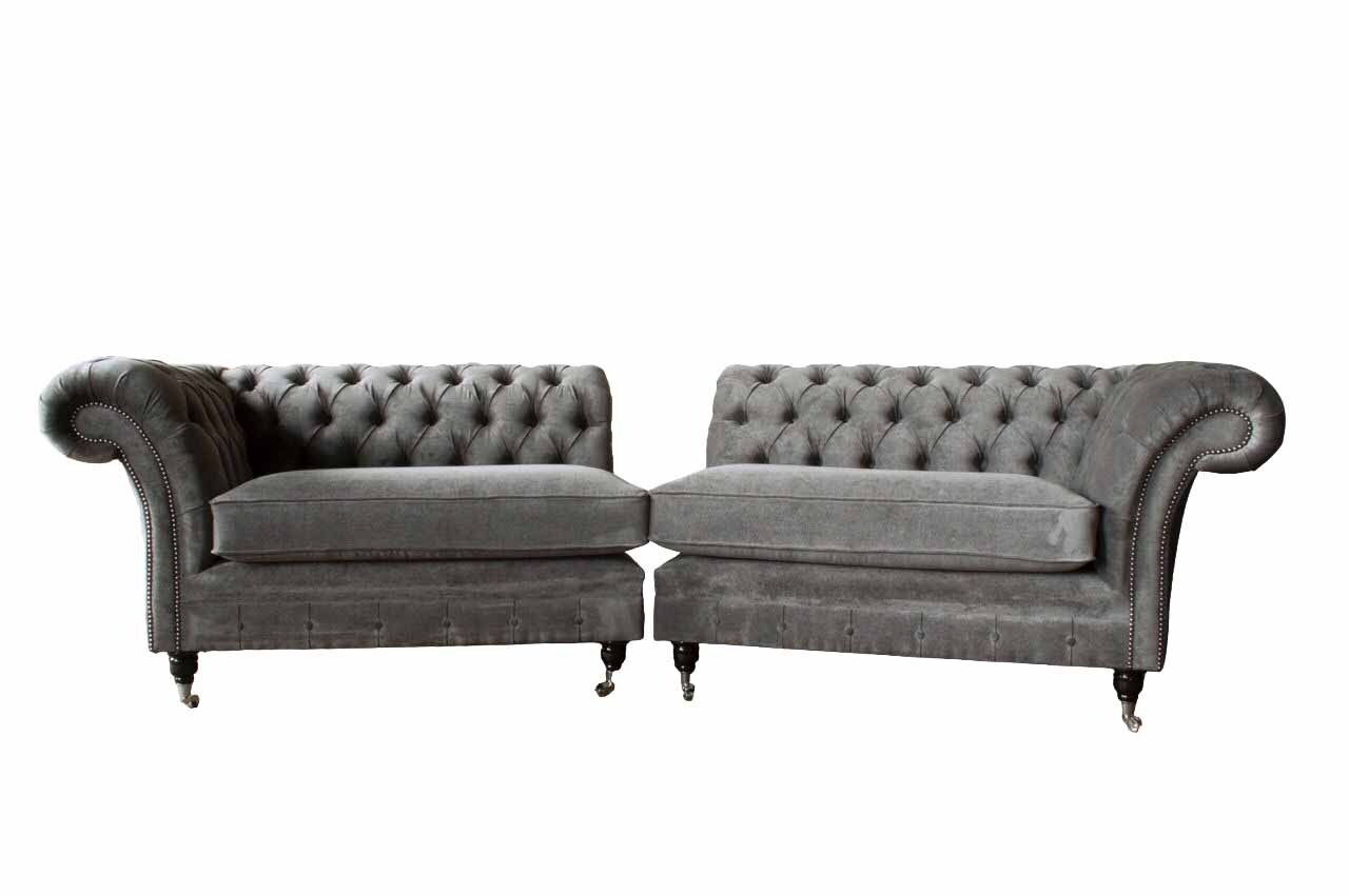 Chesterfield Viersitzer Sofa 4 Sitzer Sofas Stoff Polyester Grau Möbel