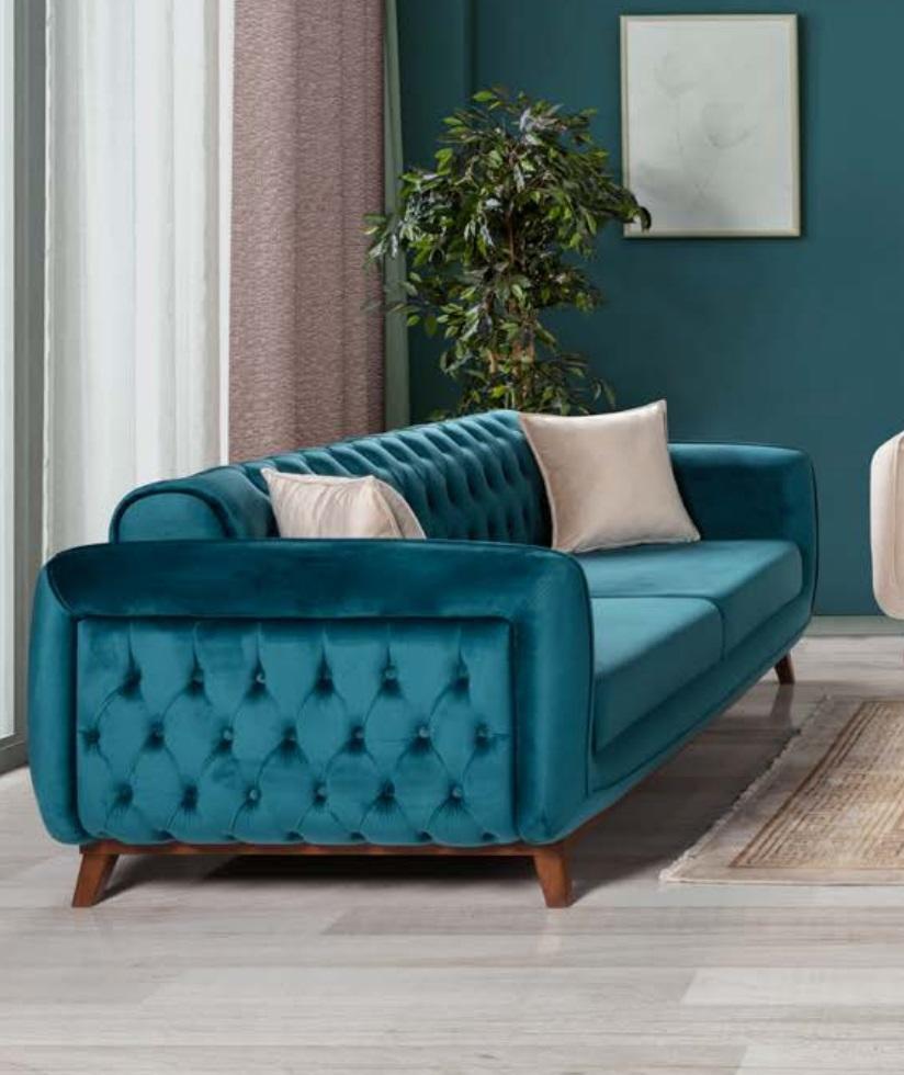 Entdecken Sie das Design Couch 3 Sitzer Sofa Dreisitzer Polster Stoff in Türkis. Mit seinen Maßen von ca. 215 x 96 x 75 cm bietet dieses exklusive Sofa aus Textil und Holz Komfort und Stil. Die Sitzhöhe beträgt ca. 44 cm und die Sitztiefe ca. 56 cm. Lassen Sie sich von der eleganten Farbe inspirieren und verleihen Sie Ihrem Wohnzimmer einen Hauch von Frische. Bestellen Sie noch heute und tauchen Sie ein in die Welt des exklusiven Designs von uns.