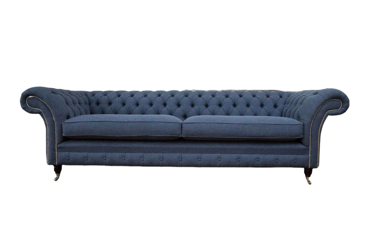 Design Sofa 4 Sitzer Couch Textil Polster Blau Sofas Chesterfield Neu
