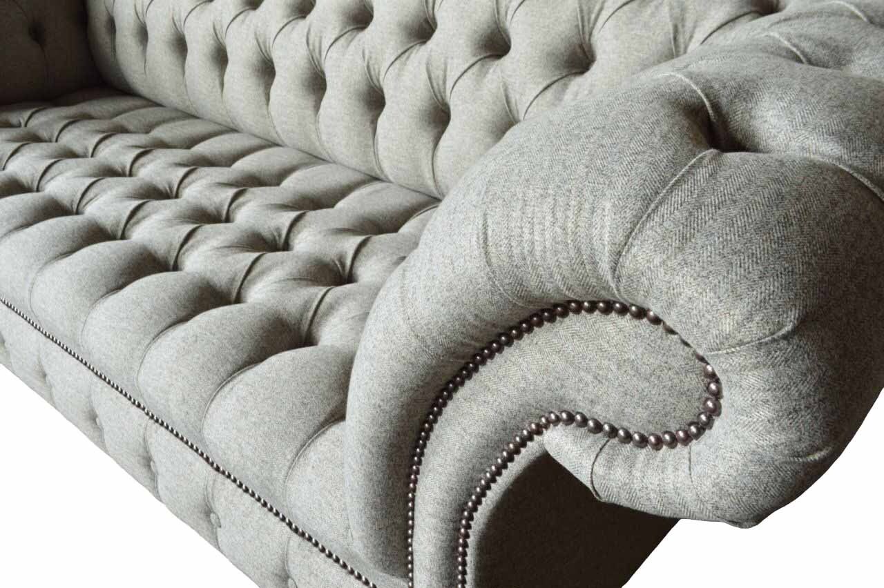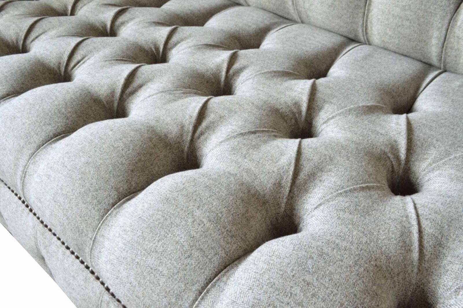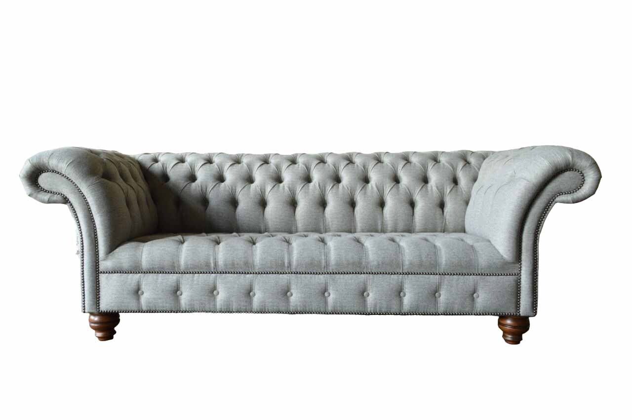 Entdecken Sie unser hochwertiges Dreisitzer Design Sofa in Grau - ein zeitloser Klassiker für Ihr Zuhause! Mit einer Länge von ca. 230 cm, einer Höhe von ca. 90 cm und einer Breite von ca. 80 cm bietet dieses Polstermöbel viel Platz zum Entspannen. Die Sitzhöhe beträgt ca. 42 cm und die Sitztiefe ca. 52 cm. Sie haben die Möglichkeit, die Farbe Ihres Sofas frei zu wählen, sowie das Material zwischen Textil und Holz zu entscheiden. Optional können Sie gegen Aufpreis zwischen verschiedenen Premium Materialien wie Echtleder, Samt oder Fleckenabweisendem Stoff wählen. Auch weitere Größen wie 5-Sitzer, 4-Sitzer, 2-Sitzer oder Einzelsitzer sind möglich, ebenso wie Sondergrößen auf Anfrage. Dieses exklusive Sofa verfügt über ein Innengestell aus echtem Holz und einen Federkern für optimalen Sitzkomfort. Veredelt wird das Design mit edlen Kristallsteinen, die wahlweise als Knöpfe oder gegen Aufpreis als Swarovski Kristallsteine angebracht werden können. Stellen Sie sich Ihr persönliches Traumsofa zusammen und erleben Sie Gemütlichkeit in neuem Design. Gönnen Sie sich Luxus für Ihr Zuhause mit unserem Designer-Sofa!