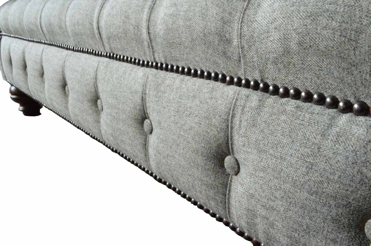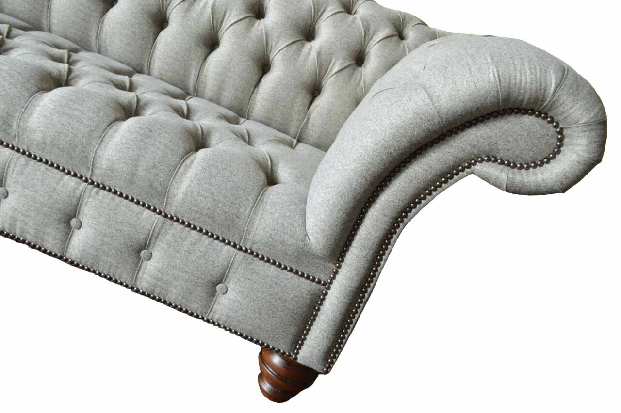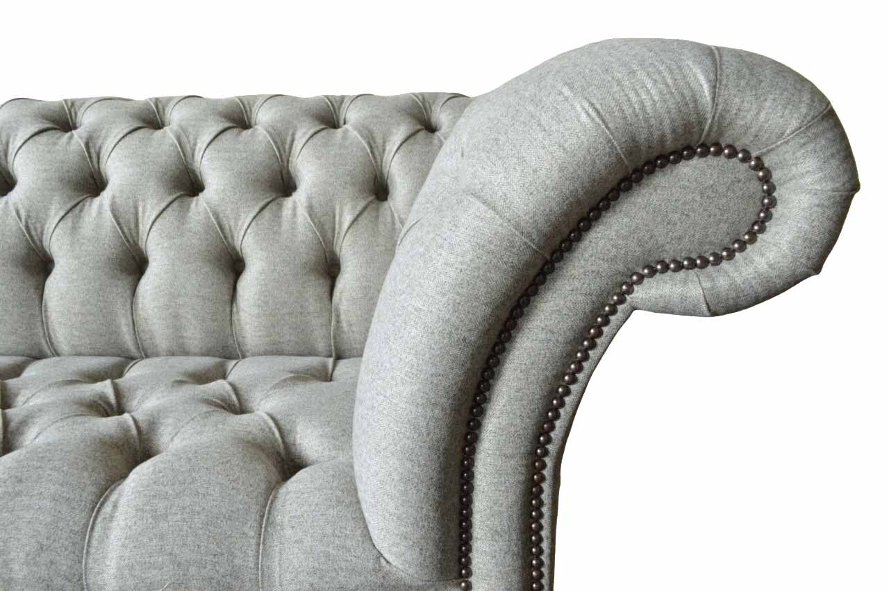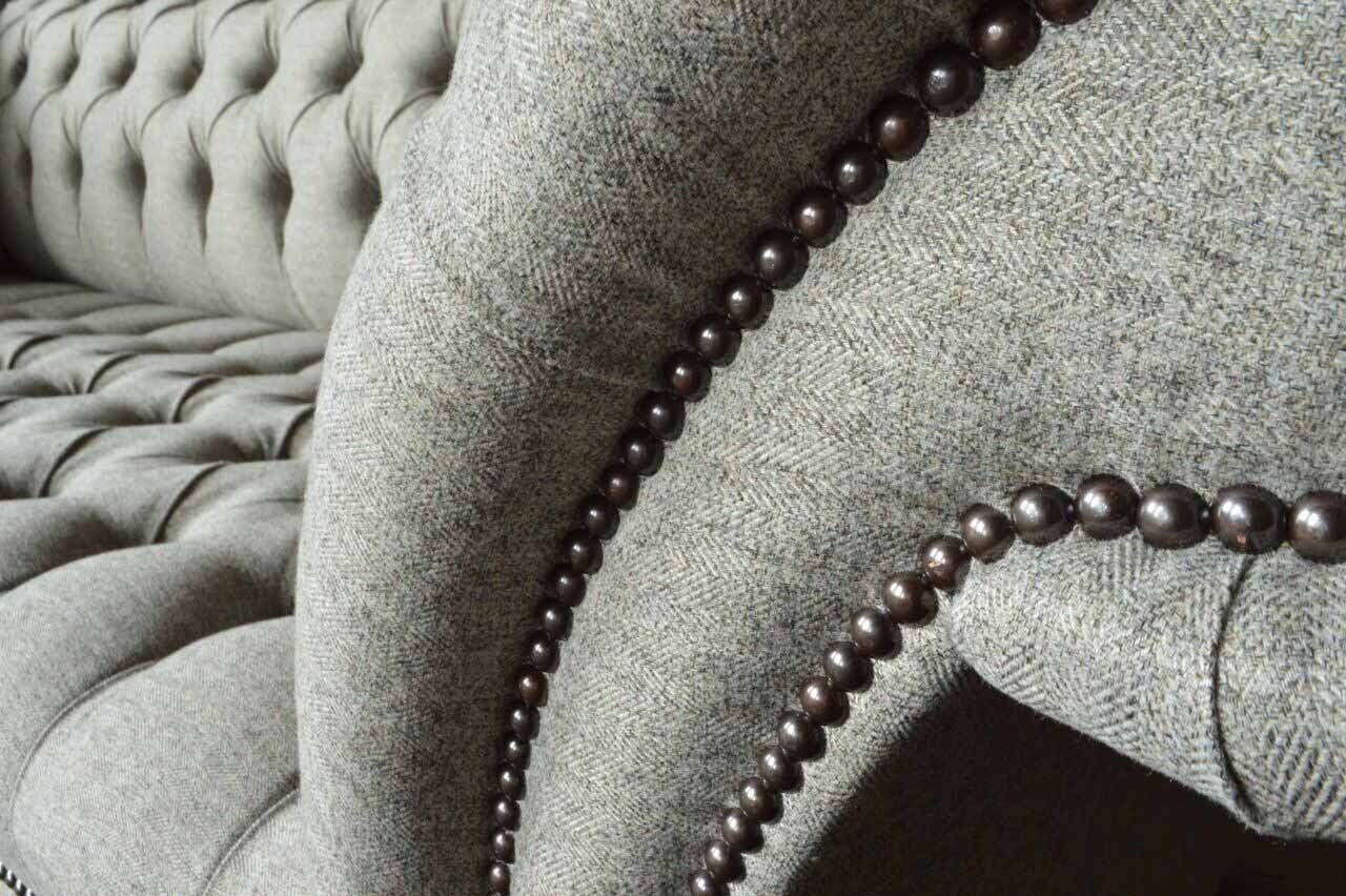 Entdecken Sie unser hochwertiges Dreisitzer Design Sofa in Grau - ein zeitloser Klassiker für Ihr Zuhause! Mit einer Länge von ca. 230 cm, einer Höhe von ca. 90 cm und einer Breite von ca. 80 cm bietet dieses Polstermöbel viel Platz zum Entspannen. Die Sitzhöhe beträgt ca. 42 cm und die Sitztiefe ca. 52 cm. Sie haben die Möglichkeit, die Farbe Ihres Sofas frei zu wählen, sowie das Material zwischen Textil und Holz zu entscheiden. Optional können Sie gegen Aufpreis zwischen verschiedenen Premium Materialien wie Echtleder, Samt oder Fleckenabweisendem Stoff wählen. Auch weitere Größen wie 5-Sitzer, 4-Sitzer, 2-Sitzer oder Einzelsitzer sind möglich, ebenso wie Sondergrößen auf Anfrage. Dieses exklusive Sofa verfügt über ein Innengestell aus echtem Holz und einen Federkern für optimalen Sitzkomfort. Veredelt wird das Design mit edlen Kristallsteinen, die wahlweise als Knöpfe oder gegen Aufpreis als Swarovski Kristallsteine angebracht werden können. Stellen Sie sich Ihr persönliches Traumsofa zusammen und erleben Sie Gemütlichkeit in neuem Design. Gönnen Sie sich Luxus für Ihr Zuhause mit unserem Designer-Sofa!