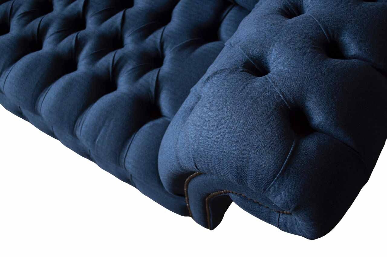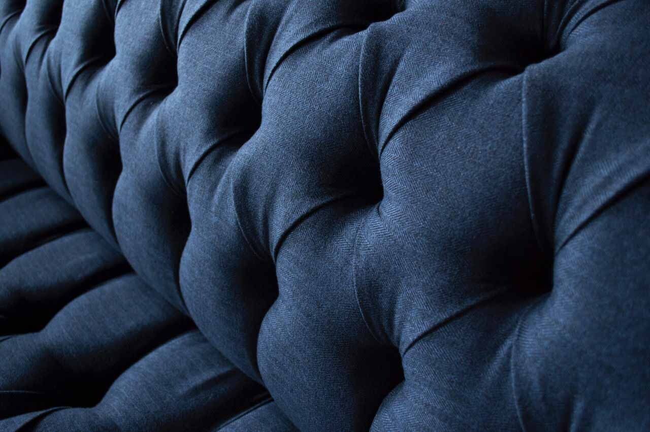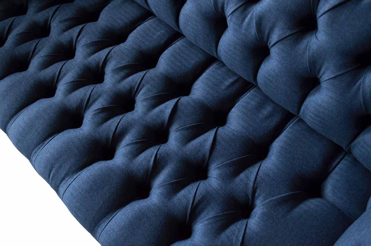 Erleben Sie Luxus und Eleganz mit unserem Dreisitzer Sofa Luxus Chesterfield in Blau! Dieses exquisite Chesterfield-Sofa bietet nicht nur erstklassigen Komfort, sondern auch Stil und Individualität. Mit Maßen von ca. 230 x 80 x 90 cm (Länge x Breite x Höhe) passt dieses Sofa perfekt in Ihr Wohnzimmer. Die Farbauswahl ist grenzenlos - von Rubinrot über Magenta bis hin zu Marineblau. Das Material aus hochwertigem Textil und Holz sorgt für Langlebigkeit und Komfort. Optional können Sie zwischen Premium Kunstleder, Echtleder, Samtstoff und Fleckenabweisendem Stoff in unserem Shop wählen. Das Innenleben besticht mit einem echten Holzgestell und Federkern für optimalen Sitzkomfort. Wenn Sie nach einem Hauch von Extravaganz suchen, haben Sie die Möglichkeit, Kristallsteine anstelle von Knöpfen hinzuzufügen. Verpassen Sie nicht die Gelegenheit, dieses Luxus-Sofa zu besitzen! Bestellen Sie noch heute und gestalten Sie Ihr Zuhause mit Stil!