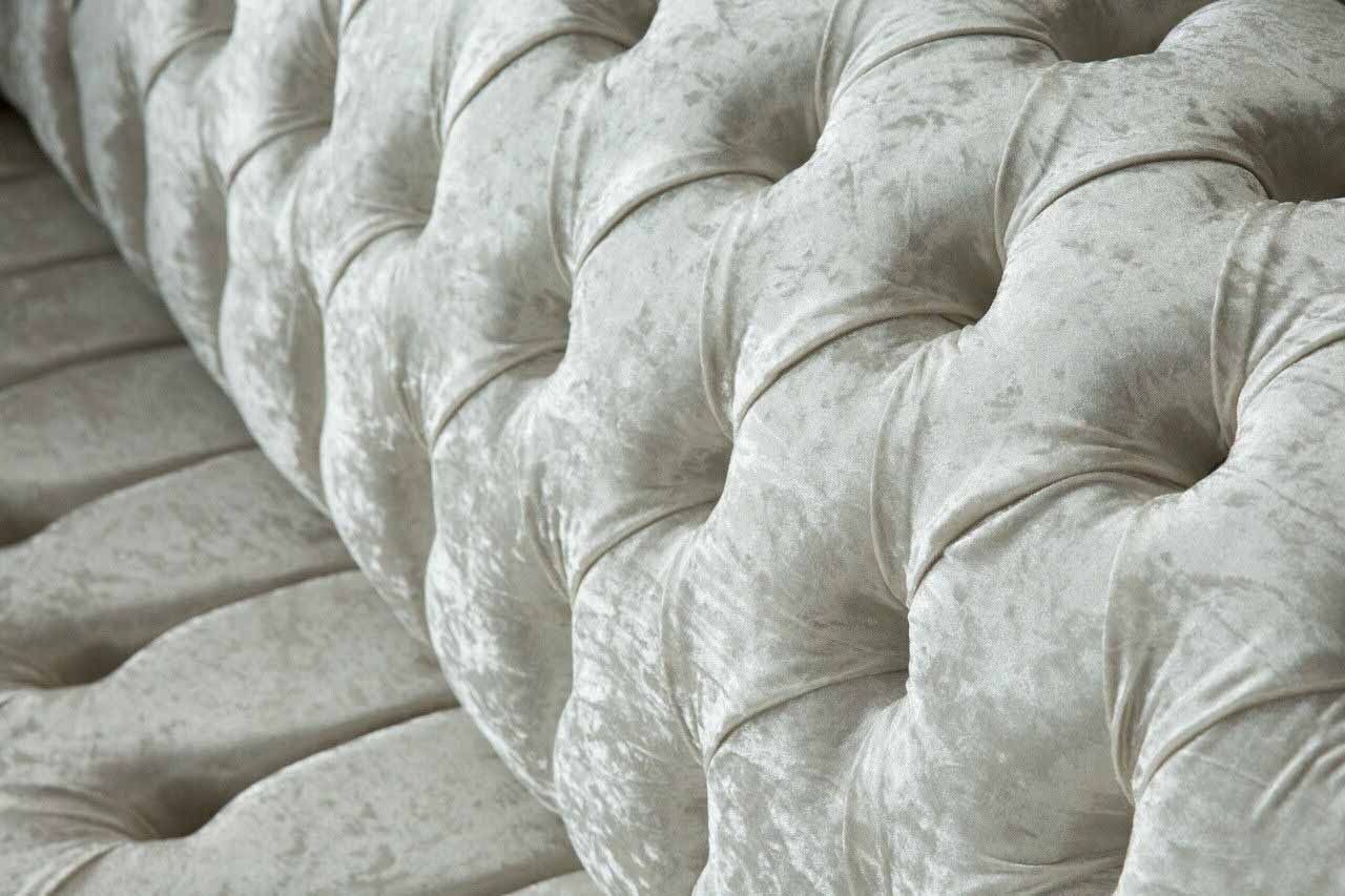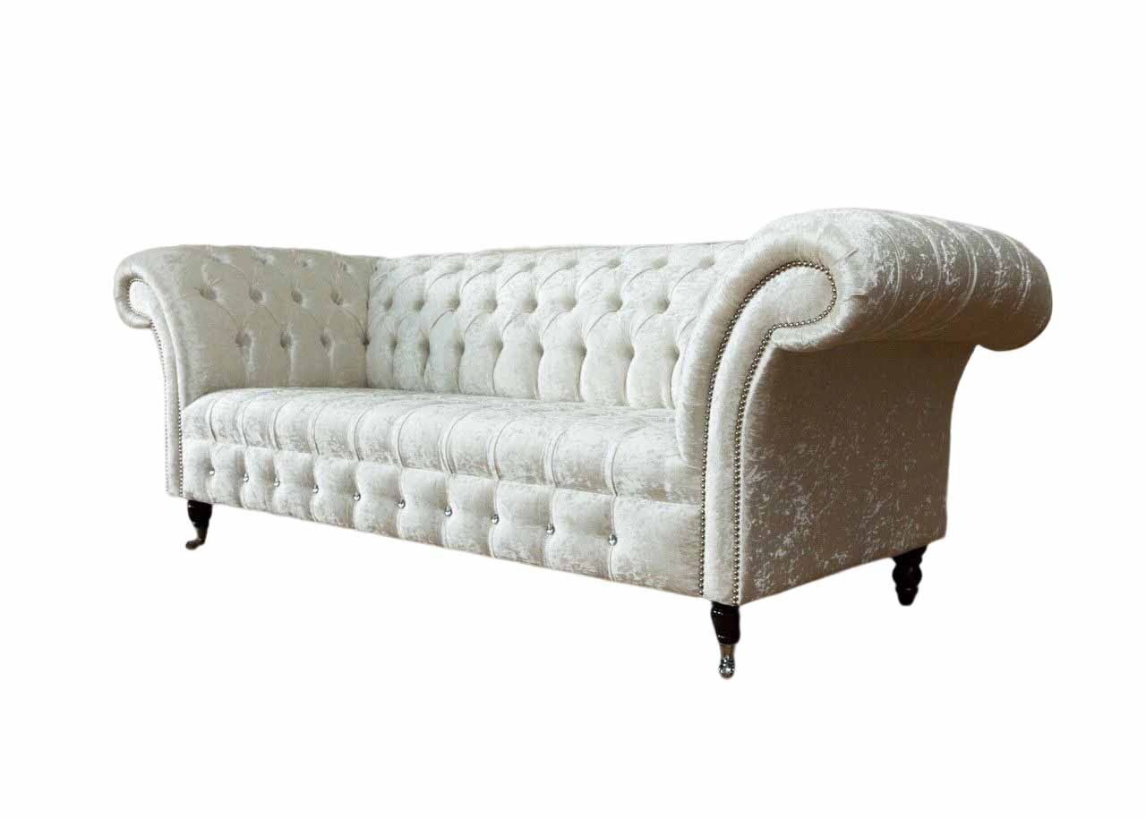 Erwecken Sie Ihren Wohnraum zum Leben mit unserem atemberaubenden Dreisitzer Weiß Stoff Wohnzimmer Design Couchen Sofa Chesterfield Couch! Dieses exklusive Möbelstück bietet nicht nur erstklassigen Komfort, sondern auch ein beeindruckendes Design. Mit Maßen von ca. 230 x 80 x 90 cm schafft dieses Sofa eine luxuriöse Atmosphäre in Ihrem Zuhause. Durch die freie Farbwahl können Sie das Sofa ganz nach Ihrem persönlichen Stil gestalten. Zudem besteht die Möglichkeit, aus verschiedenen Materialoptionen wie Premium Kunstleder, Echtleder, Samt Stoff oder dem fleckenabweisenden Magic Home Stoff zu wählen. Jedes Detail wird mit höchster Präzision gefertigt, vom Innengestell aus echtem Holz bis hin zum Federkern für zusätzlichen Komfort. Optional sind auch weitere Größen wie 5-Sitzer, 4-Sitzer, 2-Sitzer oder 1-Sitzer erhältlich. Und für eine individuelle Anpassung bieten wir sogar Sondergrößen oder Maßanfertigungen auf Anfrage an. Lassen Sie sich von der Qualität unseres Premium Sofas überzeugen und verleihen Sie Ihrem Wohnzimmer einen Hauch von Eleganz und Luxus. Gönnen Sie sich diesen exklusiven Design-Couchen und bestellen Sie noch heute!
