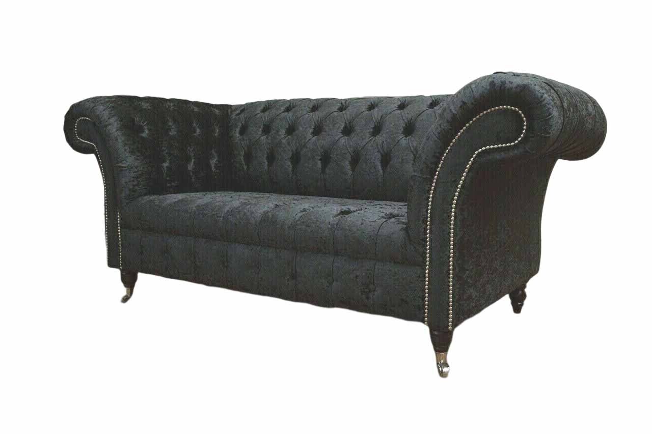 Englische Chesterfield Büro Sitzmöbel Einrichtung Sofa Couch 2 Sitz Schwarz