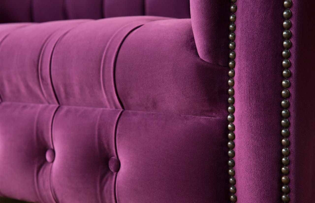 Entdecken Sie das Englische Chesterfield Büro Sitzmöbel Einrichtung Sofa Couch 2 Sitz in Violett! Mit einer Größe von ca. 185 x 80 x 90 cm bietet dieses elegante Chesterfield-Sofa nicht nur Komfort, sondern auch Stil für Ihr Zuhause oder Büro. Die individuelle Anpassung ist bei uns Standard - wählen Sie aus einer Vielzahl von Farben, darunter Rubinrot, Smaragd, Fuchsia und vielen mehr. Hergestellt aus hochwertigem Textil und Holz, können Sie zudem zwischen verschiedenen Materialoptionen wie Samt, Velours, Polyester, Kunstleder oder echtem Leder wählen. Optional sind auch Premium Echtleder aus Italien erhältlich. Individualisieren Sie Ihr Sofa mit Knöpfen, Kristallsteinen oder sogar echten Swarovski Kristallsteinen für einen Hauch von Luxus. Erweitern Sie Ihre Einrichtung mit den optionalen Größen von 1-Sitzer bis 5-Sitzer oder fragen Sie nach einer Sondergröße / Maßanfertigung. Unser Chesterfield Sofa garantiert nicht nur Qualität, sondern auch Eleganz mit seinem echten Holz-Innengestell und der Möglichkeit, Magic Home Fleckenabweisenden Stoff hinzuzufügen. Kreieren Sie Ihren persönlichen Rückzugsort mit dem Englischen Chesterfield Büro Sitzmöbel Einrichtung Sofa Couch 2 Sitz in Violett - Bestellen Sie jetzt und machen Sie Ihr Zuhause oder Büro zu einem stilvollen Ort zum Verweilen!