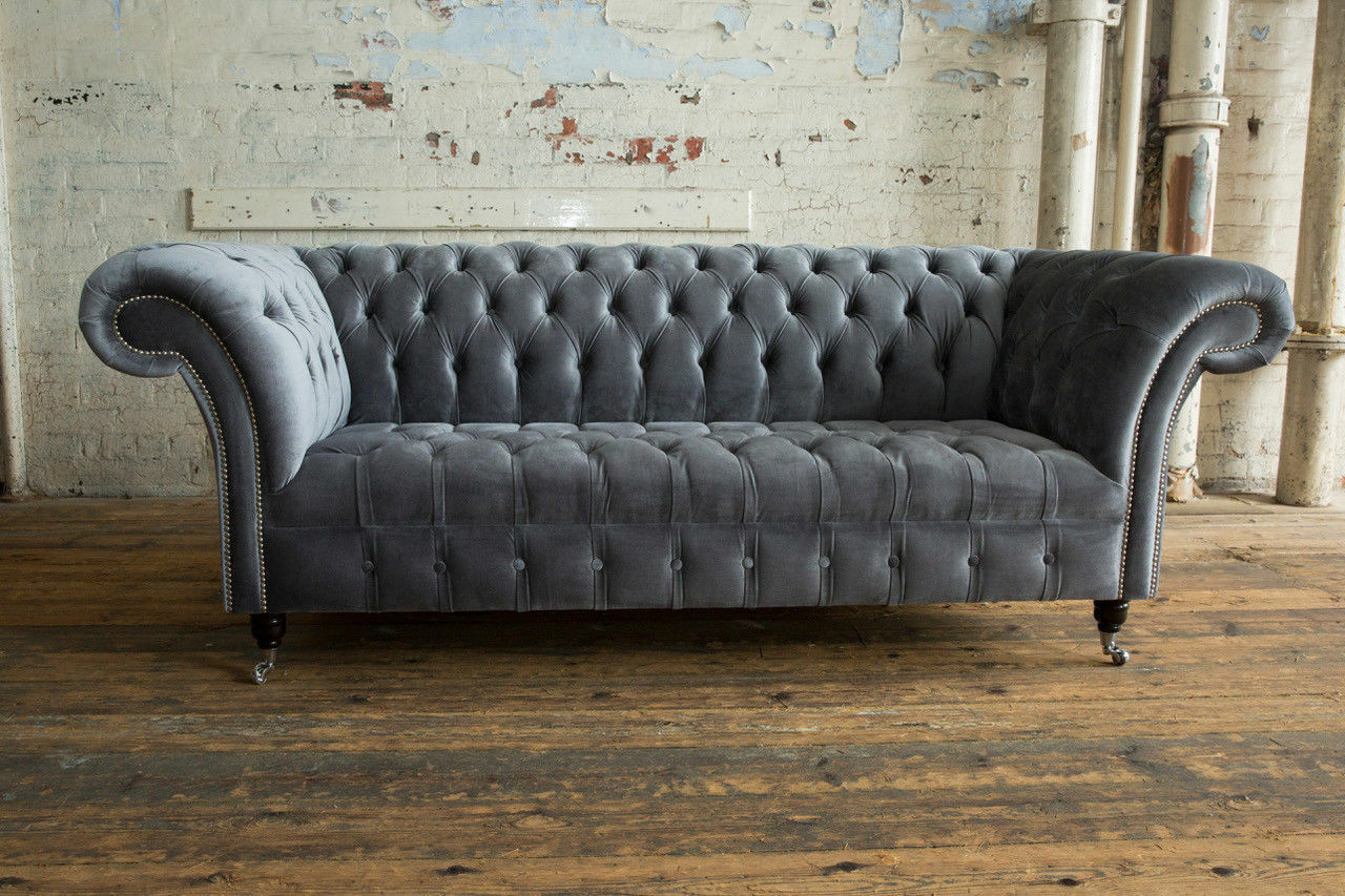 Moderner Chesterfield grauer 3-Sitzer Stilvolle Wohnzimmer 3-er Couch