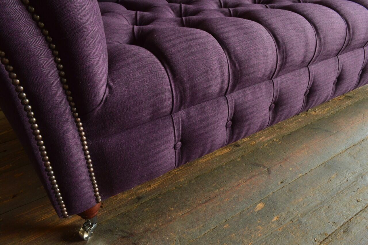 Entdecken Sie Luxus und Eleganz mit unserem modernen lila Chesterfield-Dreisitzer für Ihr Wohnzimmer! Dieses exklusive Sofa bietet nicht nur Stil, sondern auch höchsten Komfort. Mit Maßen von ca. 225 x 79 x 98 cm (L x H x T) ist das Sofa perfekt für gemütliche Abende. Sie haben die Freiheit, die Farbe individuell zu wählen, sowie das Material nach Ihren Wünschen anzupassen. Entdecken Sie unsere hochwertigen Stoff- und Lederoptionen, darunter Premium Kunstleder/Stoff, Premium Echtleder und Premium Samt Stoff. Optional können Sie sogar Magic Home Stoff wählen, der fleckenabweisend ist. Der Korpus des Sofas ist aus echtem Holz gefertigt und die Sitzpolsterung besteht aus Federkern für zusätzlichen Komfort. Lassen Sie sich von der Qualität und dem Design begeistern! Optional sind auch weitere Größen wie 5-Sitzer, 4-Sitzer, 2-Sitzer und mehr verfügbar. Gestalten Sie noch heute Ihr Traumsofa nach Ihren Vorstellungen. Gönnen Sie sich diesen eleganten Blickfang für Ihr Zuhause!