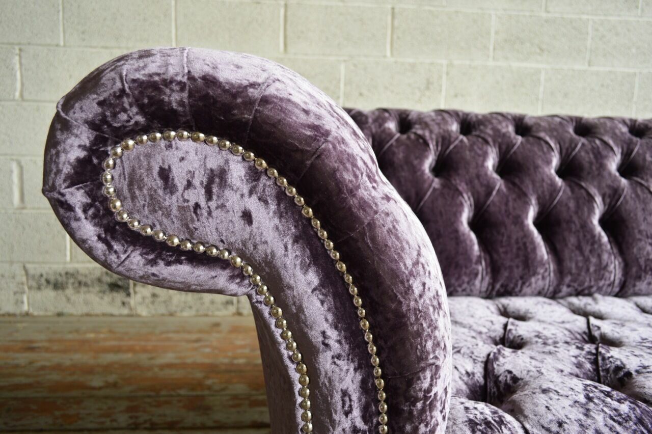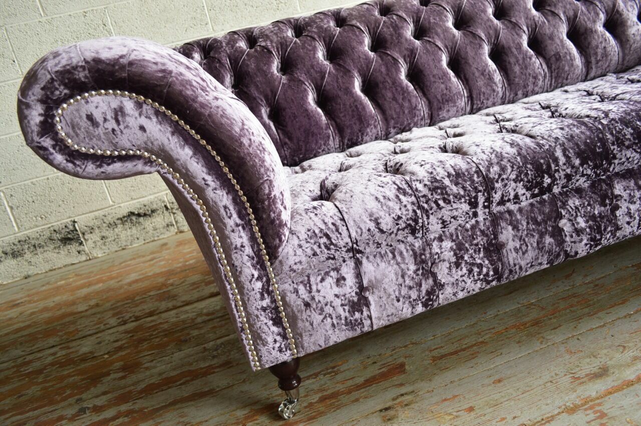 Stilvoller Lila Chesterfield Dreisitzer Luxus Wohnzimmer 3-er Couch