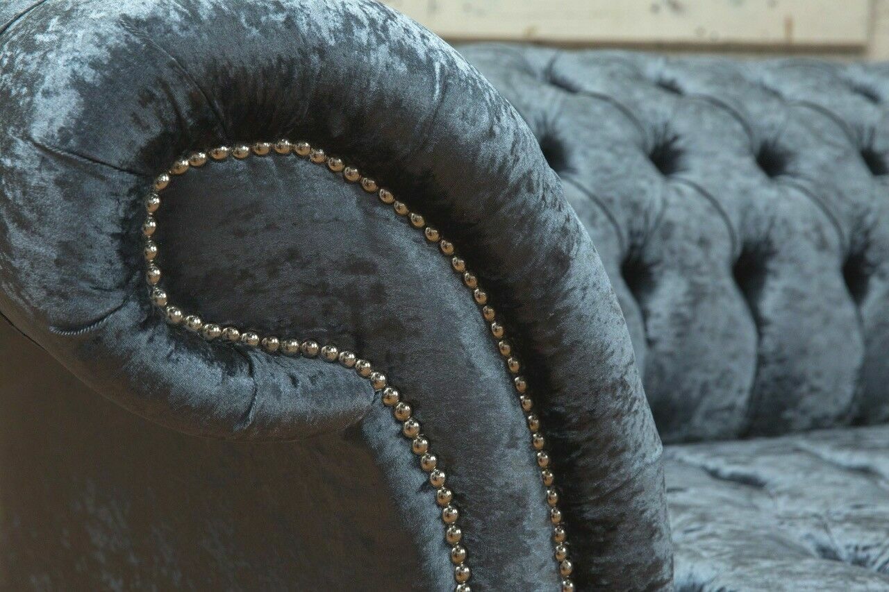 Wohnzimmer Chesterfield Sofa Couch Design Textil Couchen Sofas Dreisitzer Grau