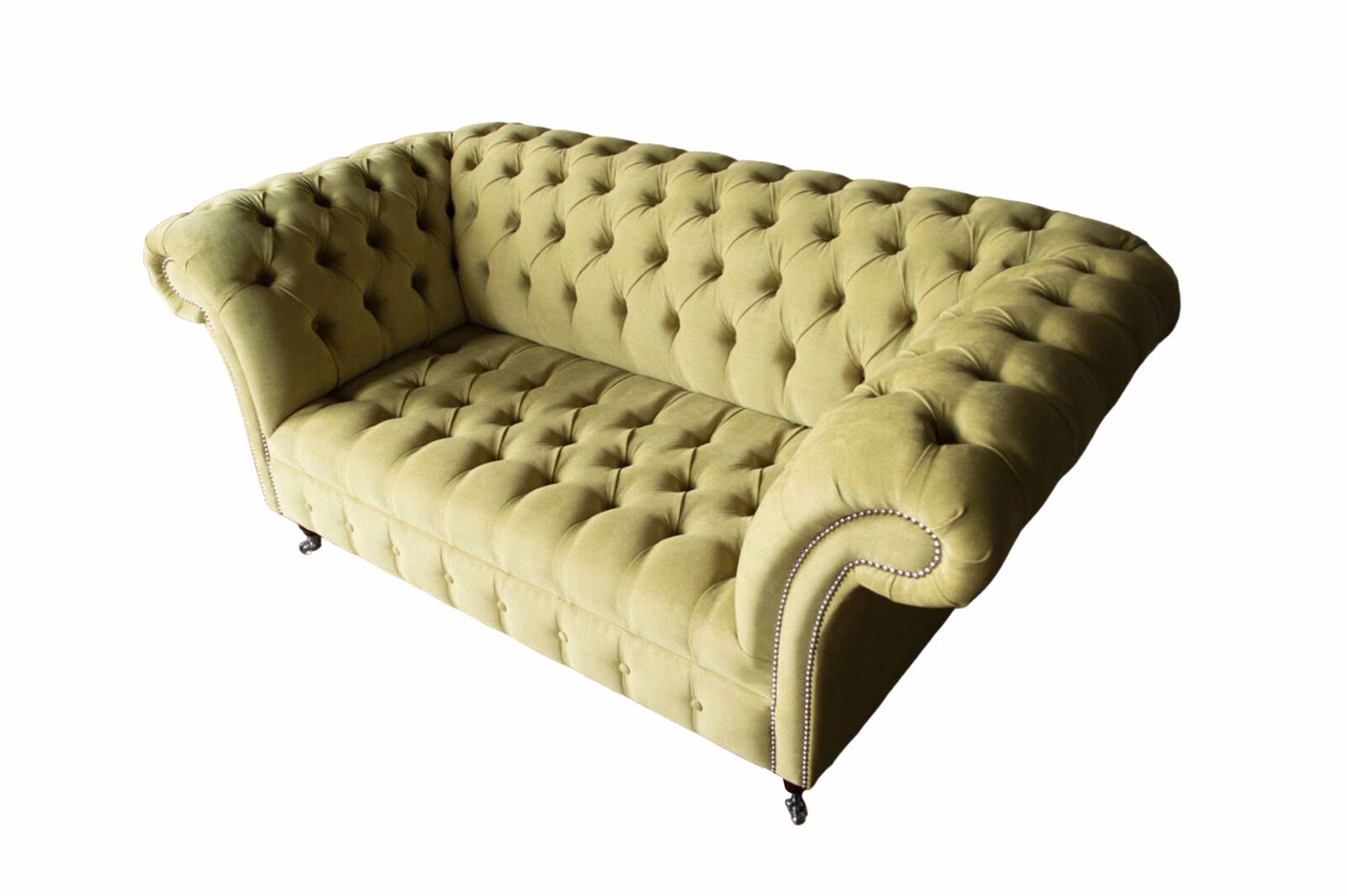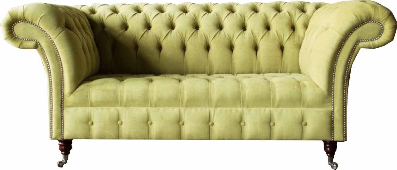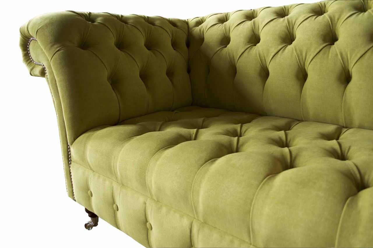Zweisitzer Sofa Luxus 2 Sitzer Wohnzimmer Hellgrün Chesterfield Stoff Neu