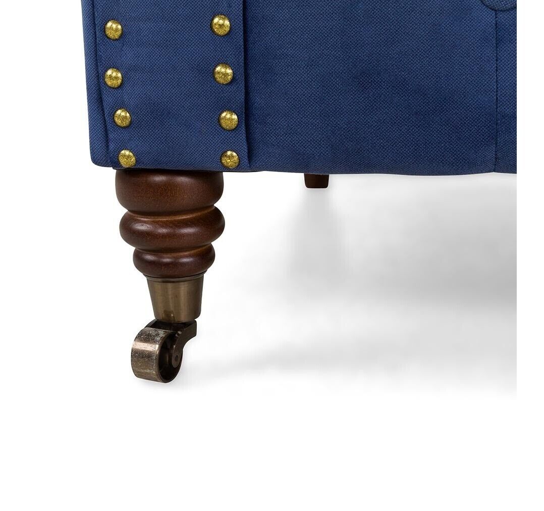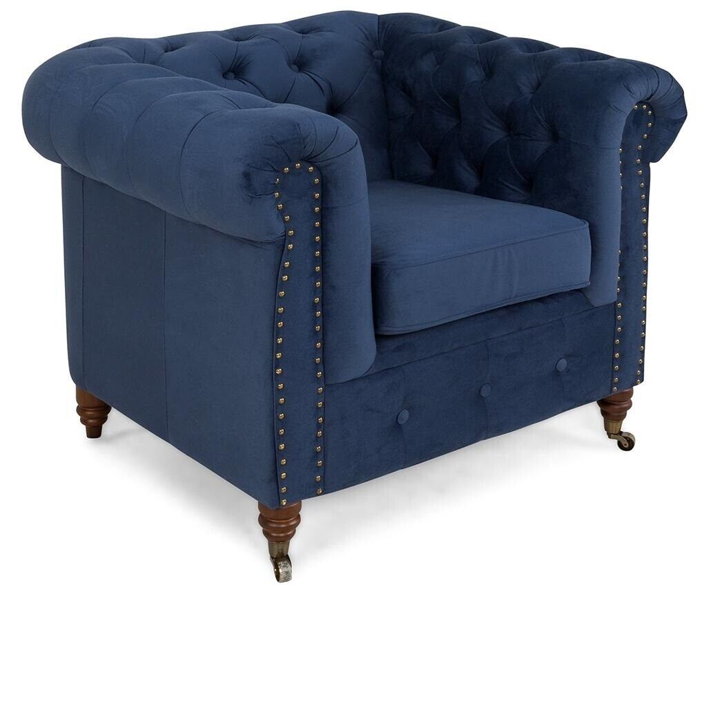 Designer Sessel 1 Sitzer Blau Leder Textil Luxus Club Lougne Sofa Chesterfield