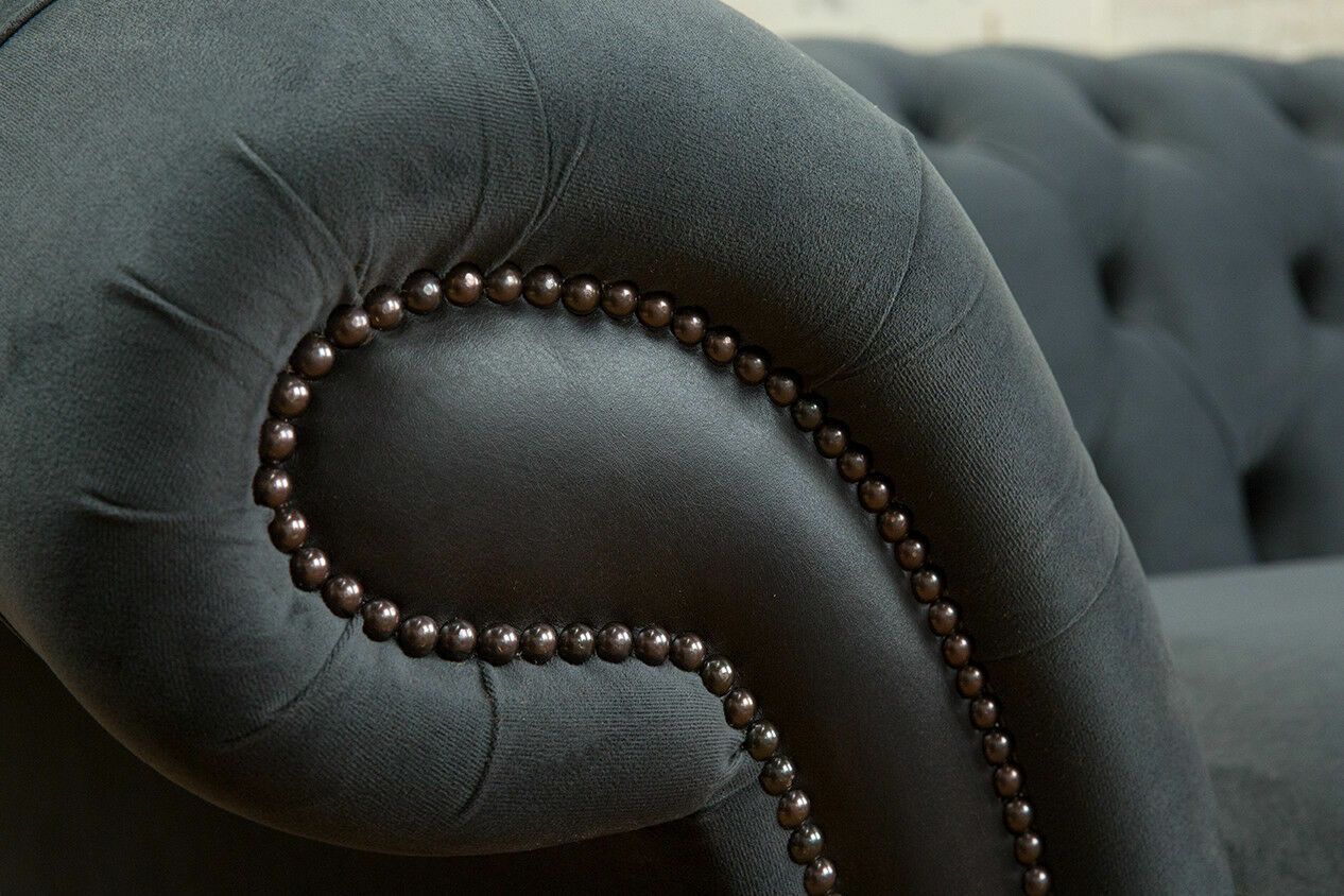Klassische Chesterfield Couch 4 Sitzer Sofa Couch Samt Leder Design Schwarz Neu
